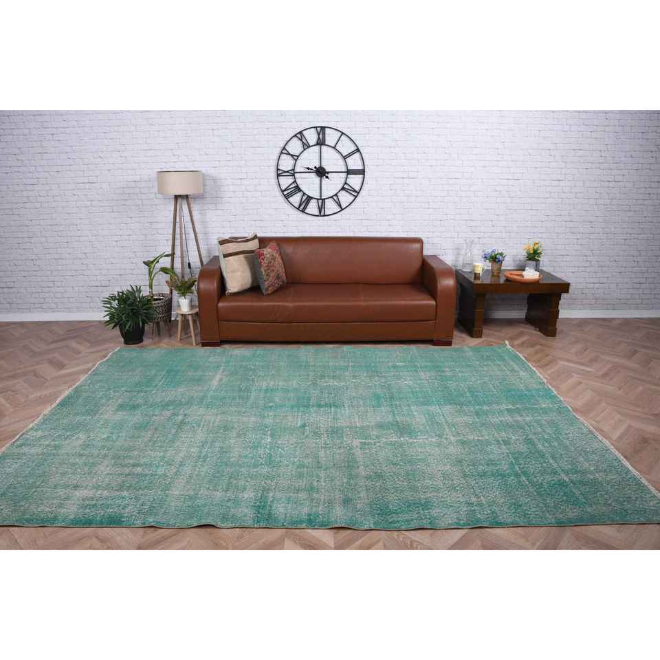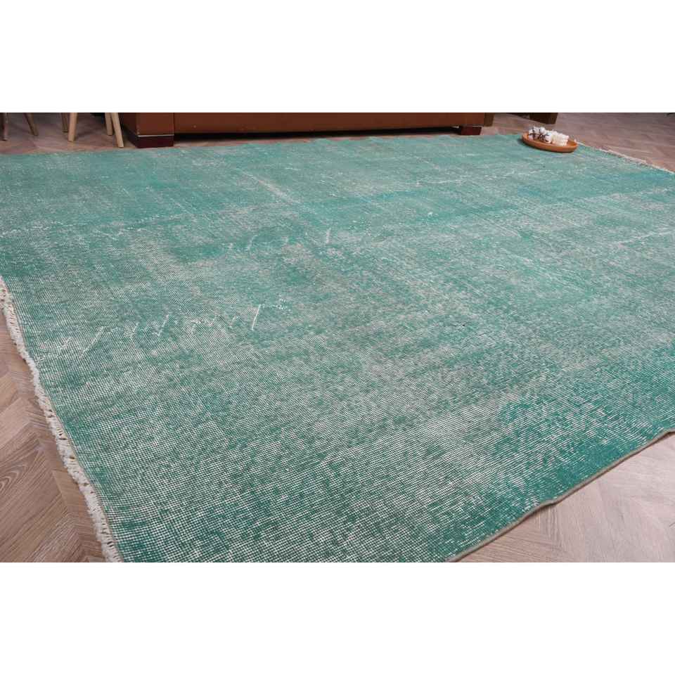 พรมวินเทจขนาด 6.9x10.3 ฟุต พรมตุรกีขนาดใหญ่ พรมลายจุดสีน้ำเงิน