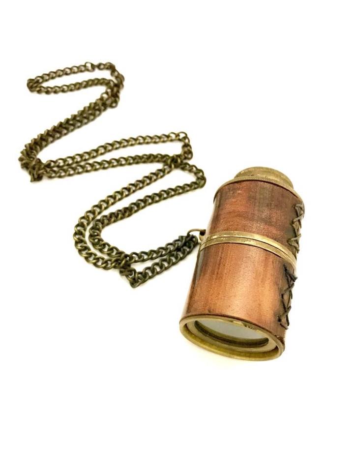 กล้องโทรทรรศน์ทองเหลืองซูม6นิ้วแนววินเทจพร้อมสายโซ่หนังสลักลายนูนสไตล์ทะเลกระจกสอดแนมกลางแจ้งในสไตล์โบราณสำหรับตกแต่งของขวัญ