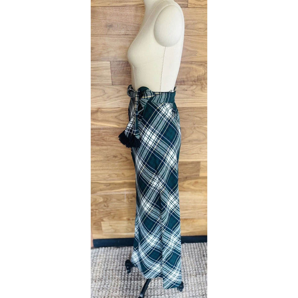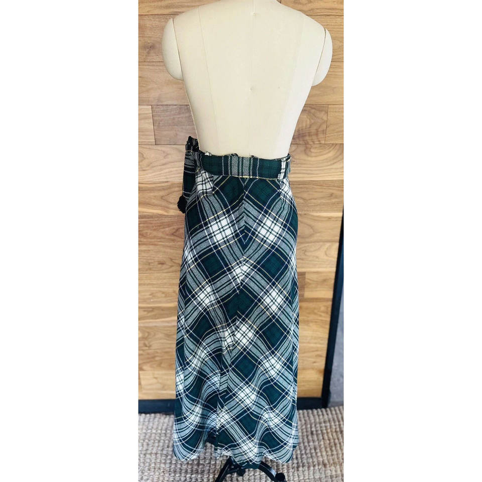 กระโปรงวินเทจยุค 60 สำหรับผู้หญิง ไซส์ XS สีเขียว สีน้ำเงิน สีดำ ลายสก็อต ผ้าขนสัตว์ กระโปรงยาวแบบมีเข็มขัด สำหรับสาวๆ ปี 2026