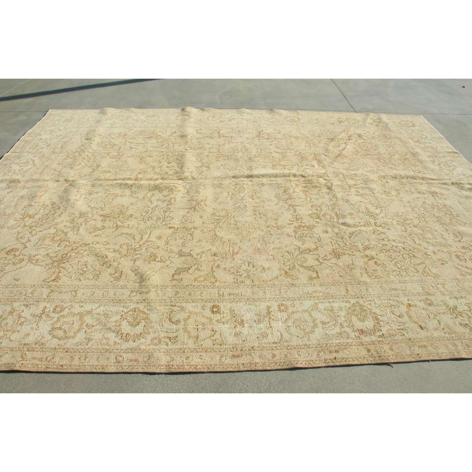 พรมวินเทจขนาด 7.8x12.8 ฟุต พรมตุรกีขนาดใหญ่ พรมขนสัตว์ลายพรางสีเบจ