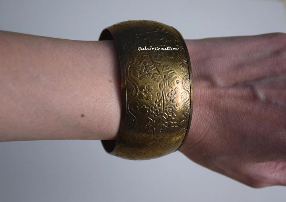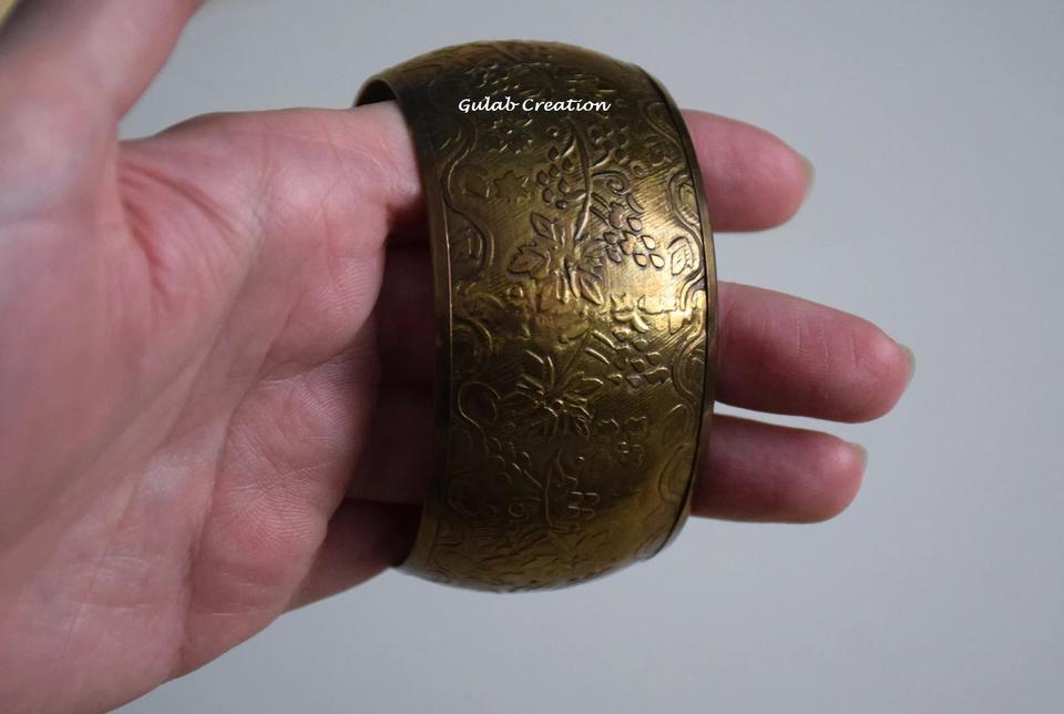วินเทจ80S/90S อายุทองทองเหลืองสลักกำไลข้อมือ