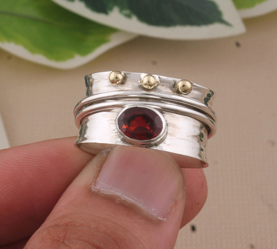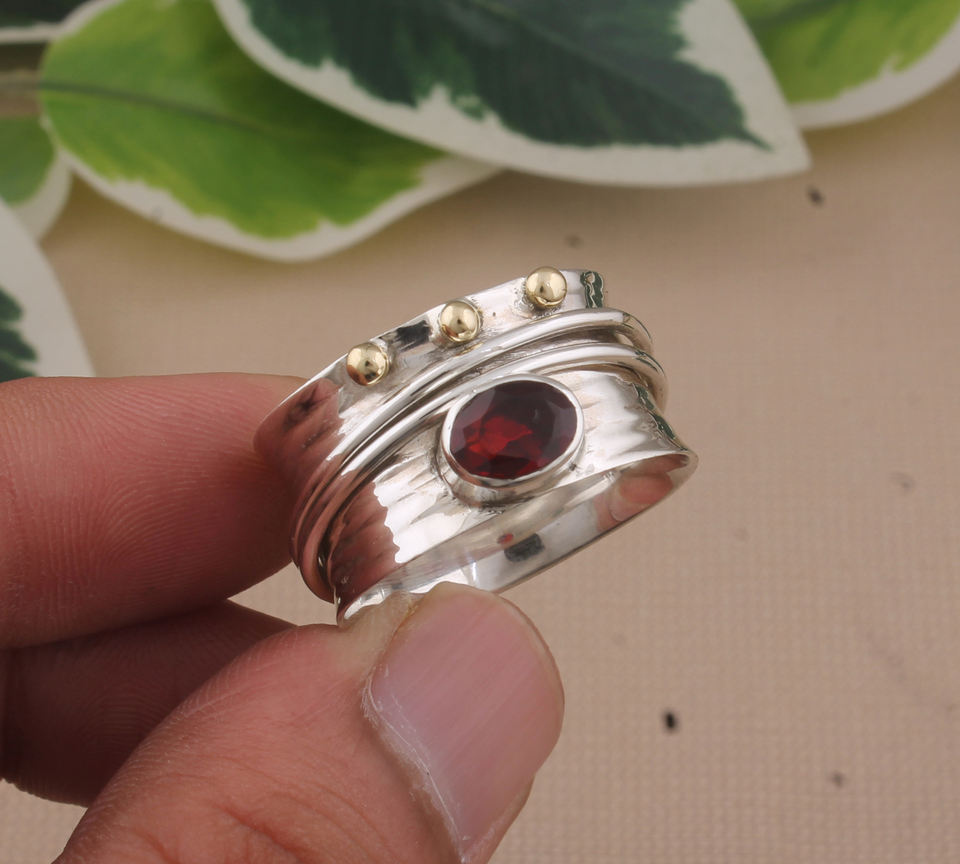 แหวนเงินแท้ 925 สไตล์วินเทจคลาสสิก ประดับด้วยลูกปัดและพลอยโกเมนสีแดงธรรมชาติ หินประจำเดือนมกราคม เหมาะสำหรับใส่ซ้อนกันในงานปาร์ตี้ สำหรับผู้หญิง