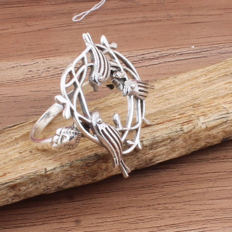 แหวนเงินแท้ 925 วินเทจ ประดับรูปนกกระจอก งานแฮนด์เมด ลายสัตว์ ดีไซน์โบราณ เครื่องประดับสำหรับงานปาร์ตี้สำหรับผู้หญิง