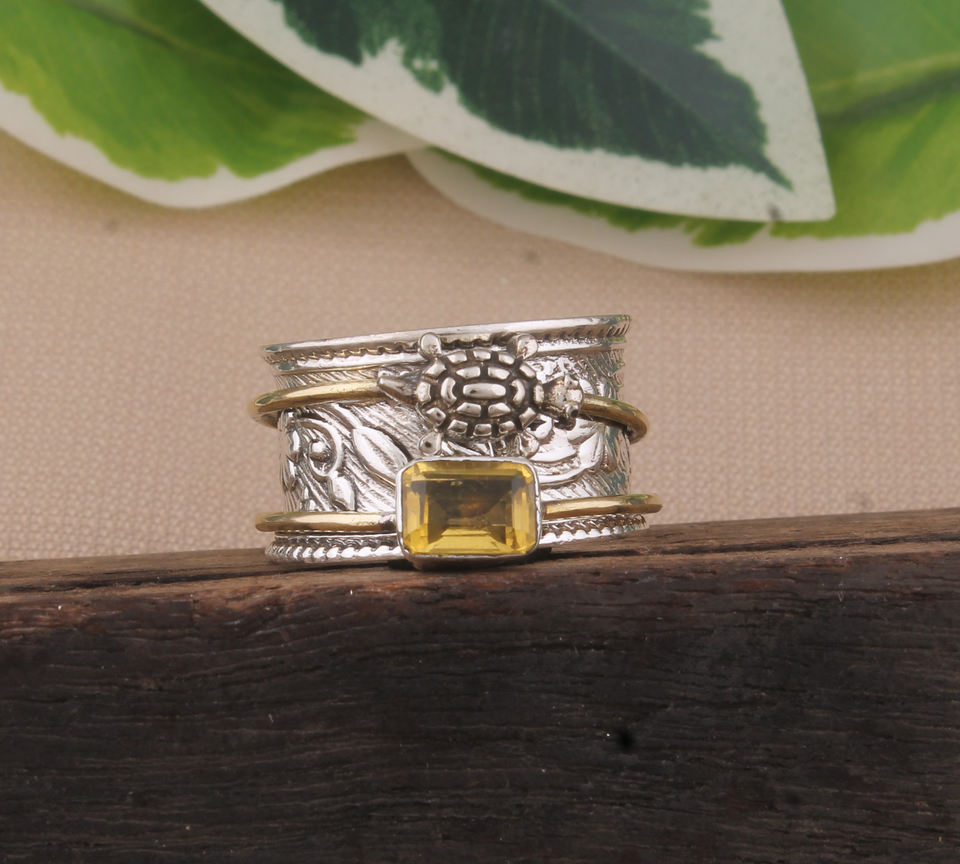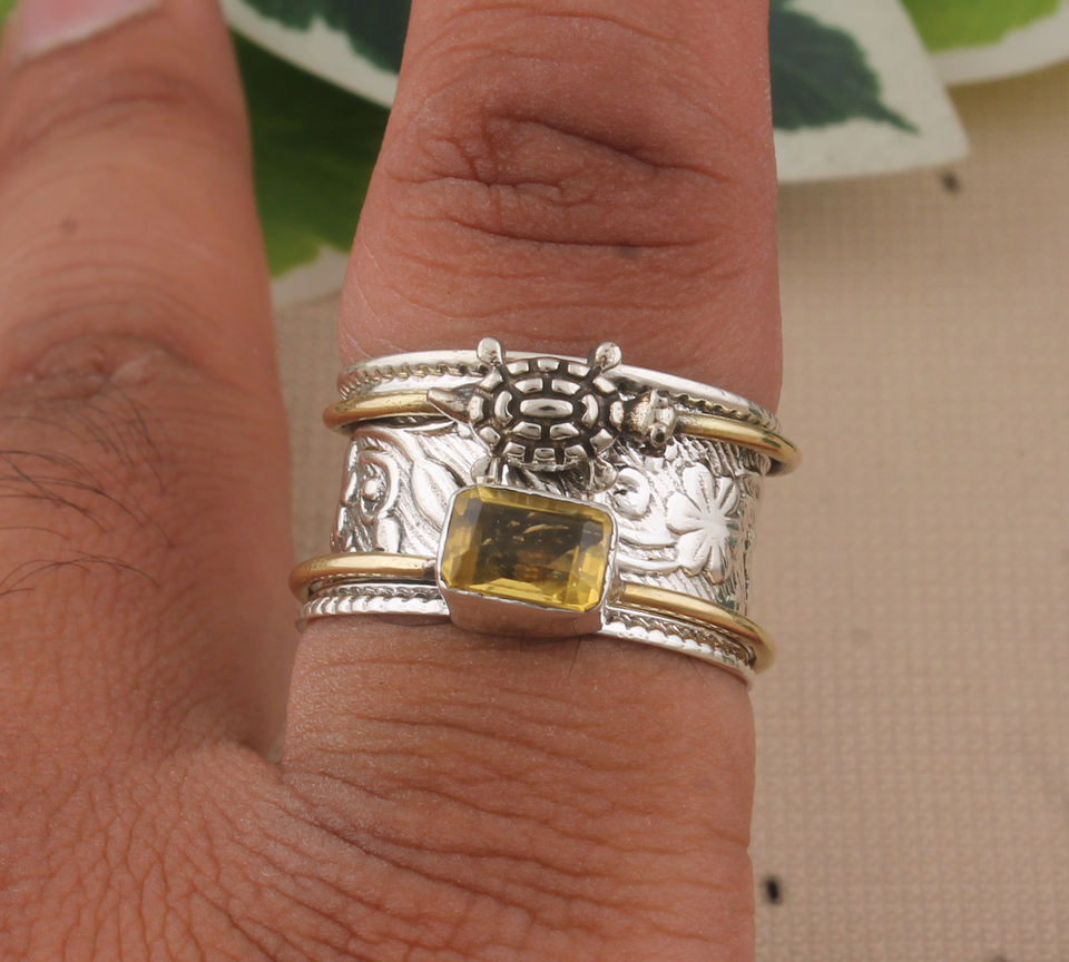 แหวนเงินแท้ 925 วินเทจ ประดับพลอยซิทรินรูปเต่า ดีไซน์สัตว์ สำหรับผู้หญิง เหมาะสำหรับงานปาร์ตี้ริมชายหาด ขายส่งจากโรงงาน