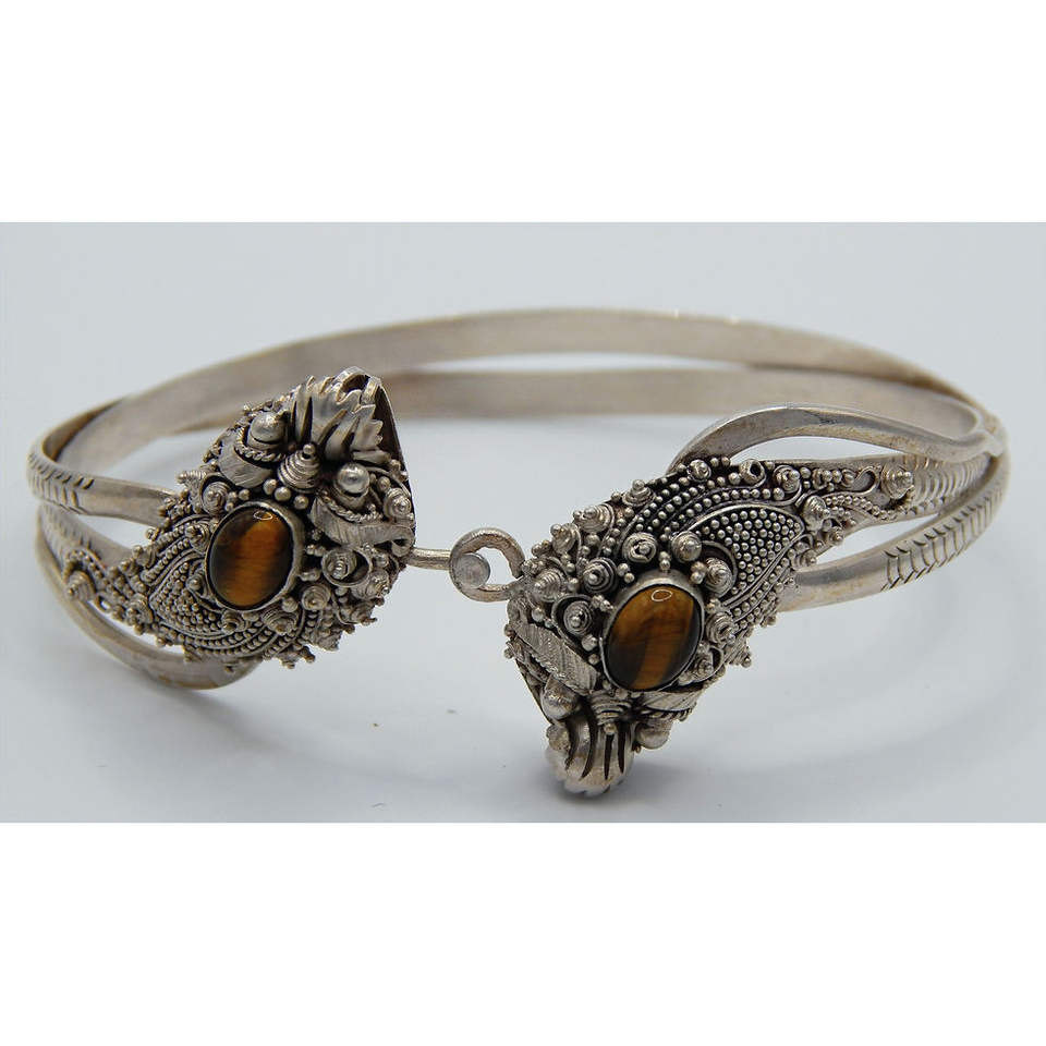 Vintage .925 Sterling Silver Dragon Cuff for Bracelet with Tiger Eye Unique Fashion Accessory