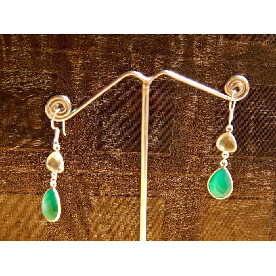 ต่างหูเงินสเตอริ925วินเทจสีเขียวอเมทิสต์และโอนิกซ์หยกสีเขียวธรรมชาติสีเขียวขอบทองหินหลัก
