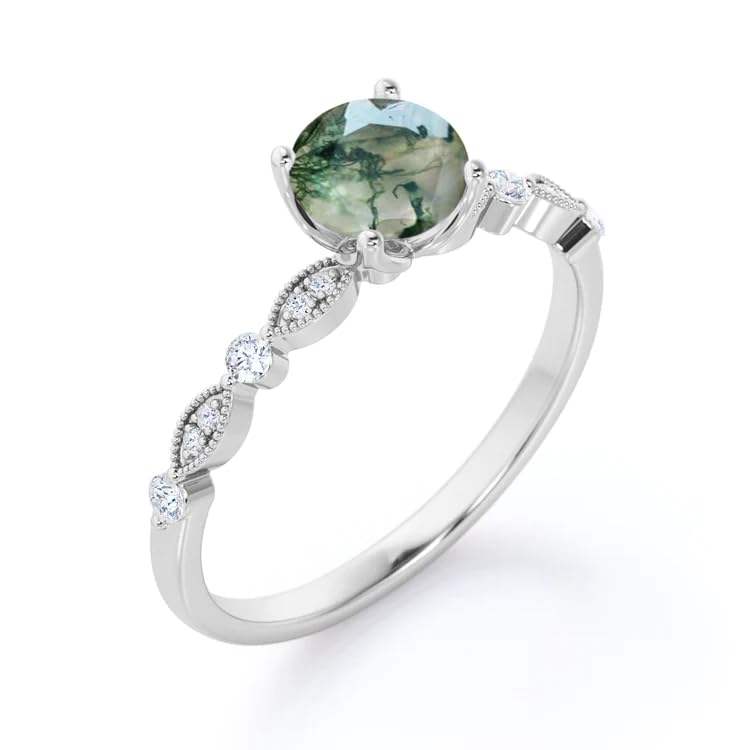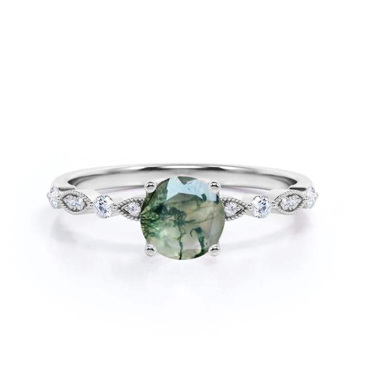 แหวนเงินแท้ 925 วินเทจ ประดับพลอยมอสกรีนอาเกต คิวบิกเซอร์โคเนีย และเพชร ชุบทอง 14k คลาสสิก เหมาะสำหรับงานแต่งงานและงานเลี้ยง