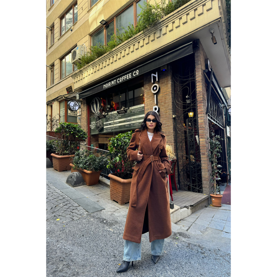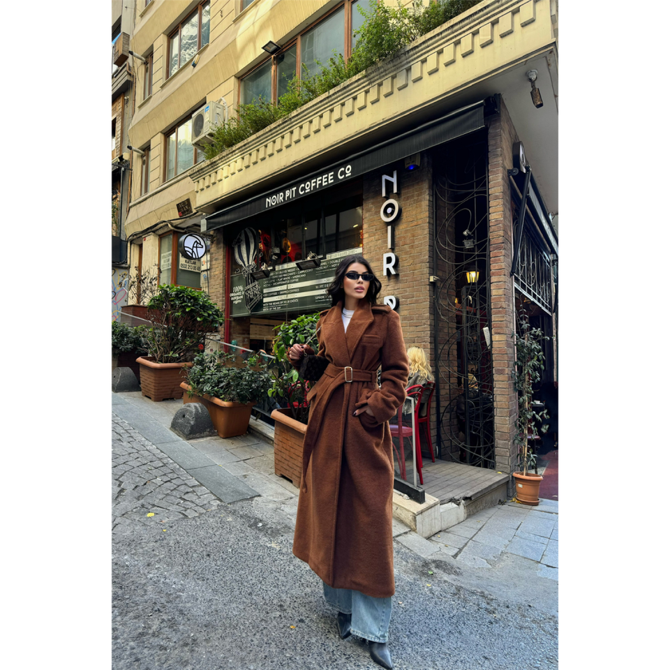 เสื้อโค้ทขนอัลปาก้าวินเทจ สีน้ำตาล กระดุมสองแถว ปิดกระดุมเม็ดเดียว มีฮู้ดถอดได้ ลายพิมพ์วินเทจ ขนาด XS-XL ระบายอากาศได้ดี เหมาะสำหรับฤดูหนาว