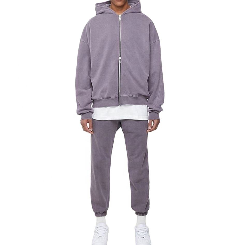 Vintage Acid Stone Wash Pull-Zip Hooded Sweatshirt Distressed Heavyweight XL Oversize Top for Men Solid Fall Winter Style