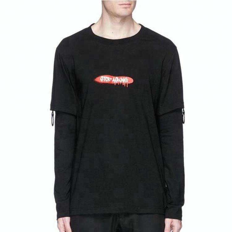 เสื้อยืดฮิปฮอปแขนสองชั้นระบายอากาศเสื้อคอกลมพิมพ์โลโก้เสื้อวัยรุ่นสำหรับผู้ใหญ่ยอดนิยม