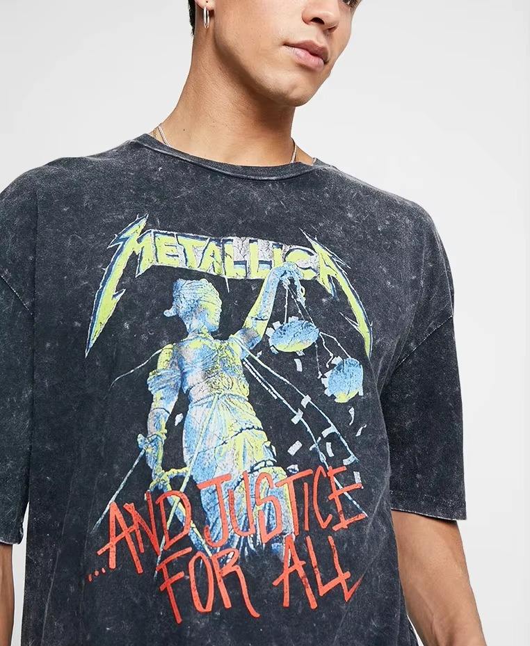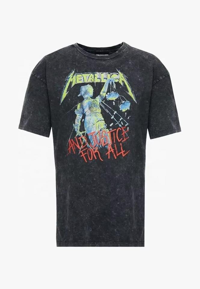 เสื้อยืดคอกลมทรงปกติสำหรับผู้ชาย ลายพิมพ์ดิจิทัลสีดำล้วน ผ้าฝ้าย 100% ระบายอากาศได้ดี เป็นมิตรกับสิ่งแวดล้อม น้ำหนัก 240 กรัม สไตล์วินเทจ ล้างสีแบบแอซิดวอช