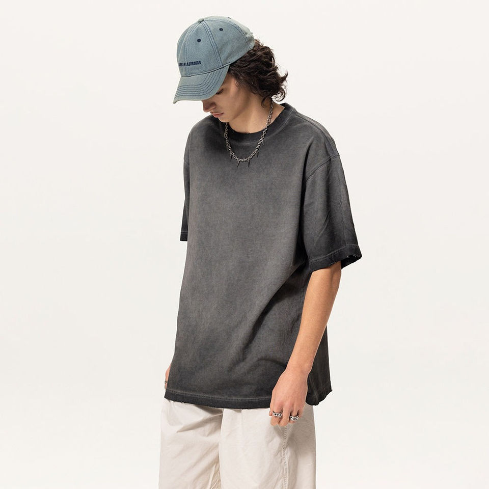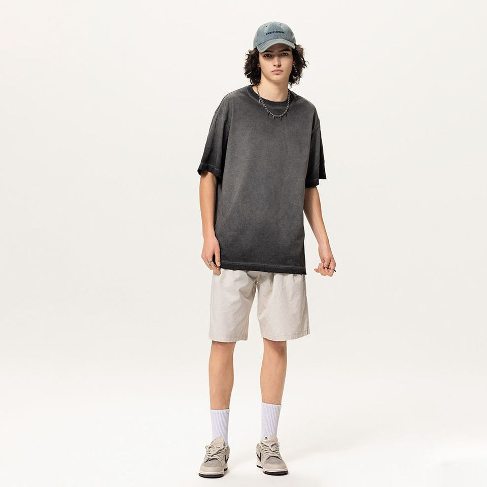 เสื้อยืดวินเทจฟอกสีทรงโอเวอร์ไซส์สำหรับผู้ชาย ผ้าฝ้าย 100% แขนสั้น คอกลม ผลิตตามสั่ง มีสินค้าในสต็อกจำนวนมาก