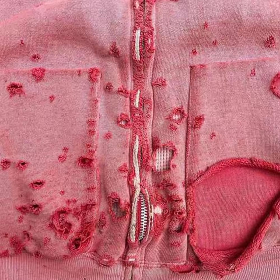เสื้อฮู้ดผู้ชายผ้าคอตตอน100% ซีดจางมีซิปขนาดใหญ่พิเศษแบบวินเทจ