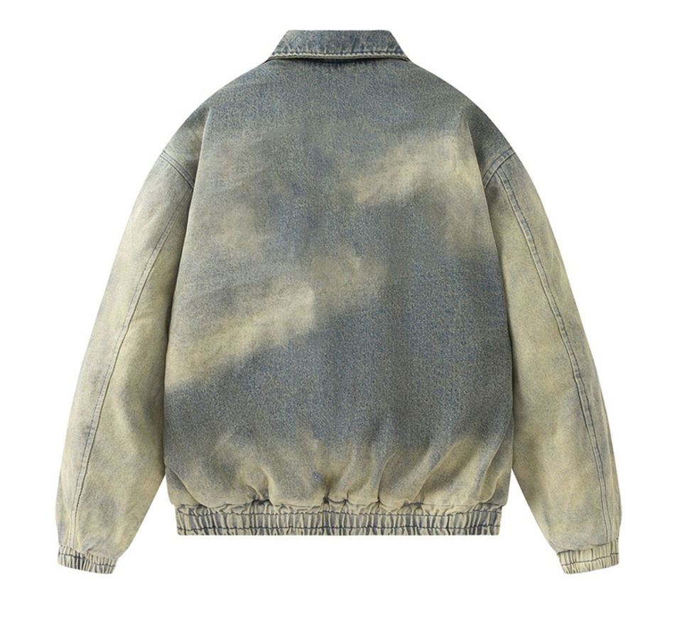 เสื้อแจ็กเก็ตผ้ายีนส์ฟอกสีออกแบบได้ตามที่ต้องการสไตล์วินเทจเสื้อแจ็กเก็ตสวมใส่ได้ทั้งชายและหญิงมีซิปรูดกันน้ำกันลมระบายอากาศได้ดี