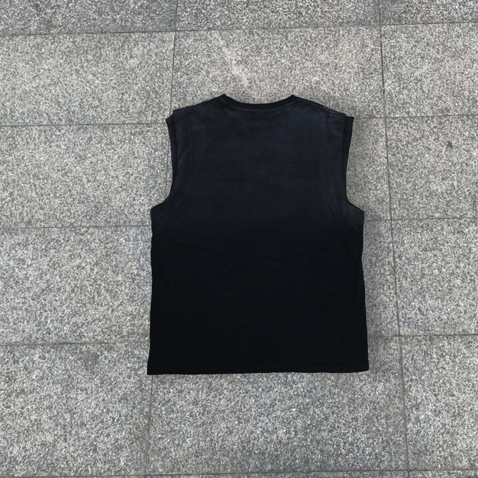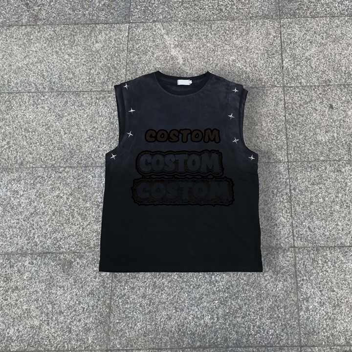เสื้อกล้ามวินเทจทรงหลวม คอวี แบบย้อมสีเอซิด สไตล์สตรีทพิมพ์ลายตัวอักษรสำหรับผู้ชาย