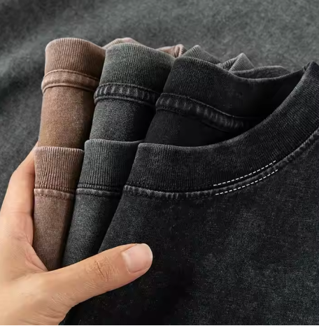 เสื้อยืดแขนสั้นคอวีทรงโอเวอร์ไซส์สไตล์วินเทจฟอกสี ผ้าฟลีซหนานุ่มสำหรับผู้ชาย สกรีนโลโก้ตามสั่ง ดีไซน์ทำเก่า ผ้าโพลีเอสเตอร์ 100%