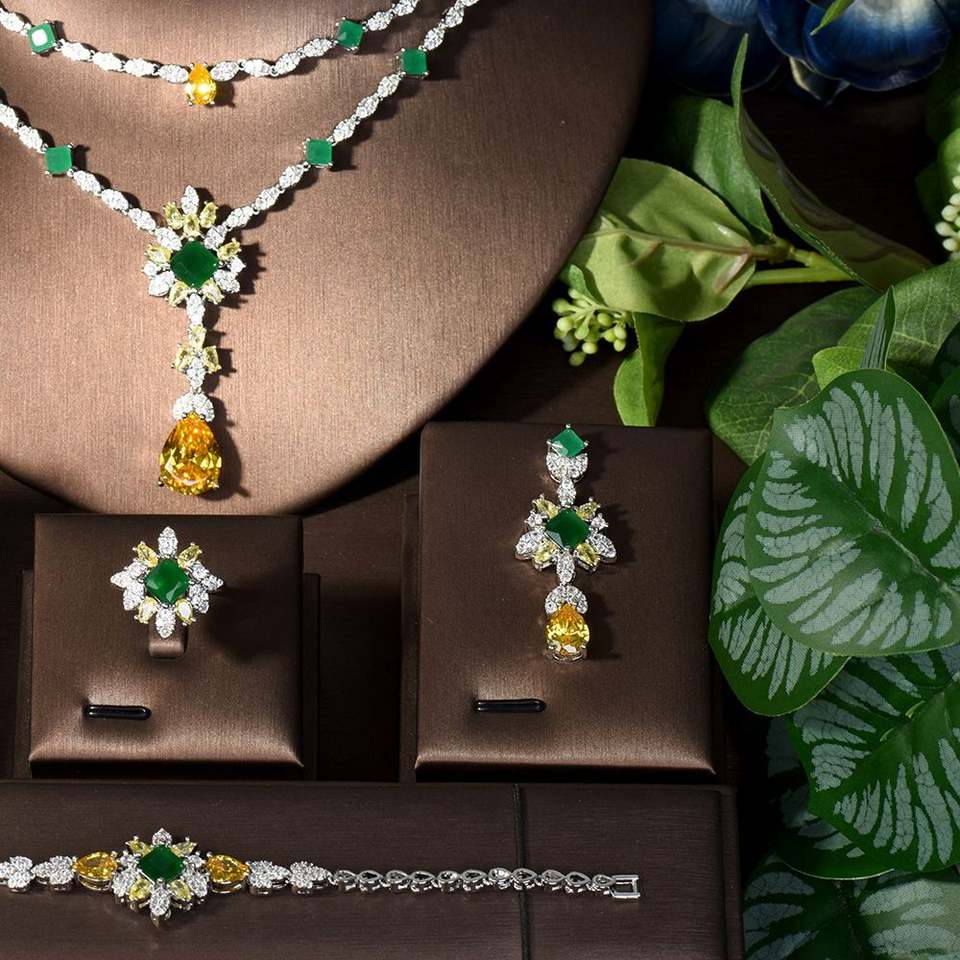 Vintage African Nigerian Set Cubic Zirconia Super Sparkle Necklace Earrings Bridal Wedding Evening Party Dress Accessories S-250