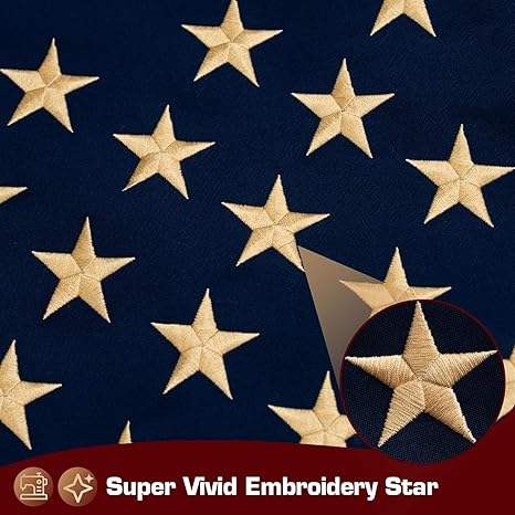 Vintage American Flag 3x5 Ft 100% Cotton Waterproof Hanging Style Aluminum Flagpole Embroidered Tea Stained Heavy Duty Antiqued