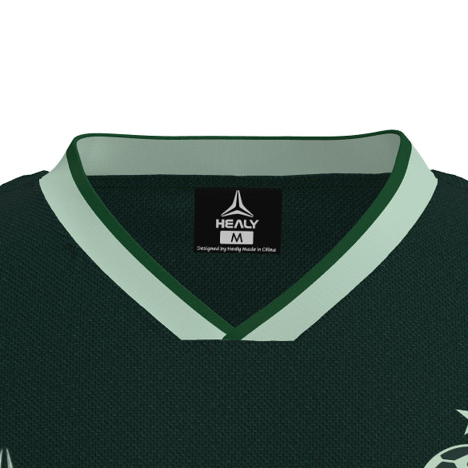 เสื้อเจอร์ซีย์ HEALY ลายพิมพ์ดิจิทัลสไตล์อเมริกันวินเทจ สีเขียวเข้ม แต่งตราสัญลักษณ์แบบตัดกัน ผ้าตาข่าย แขนสั้น สำหรับผู้ชาย