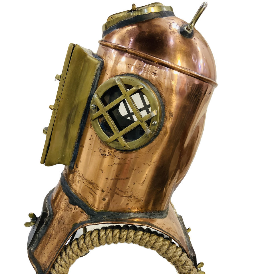 หมวกนักดำน้ำโบราณวินเทจหมวกกันน็อคนักดำน้ำ7นิ้วสีดำน้ำลึก