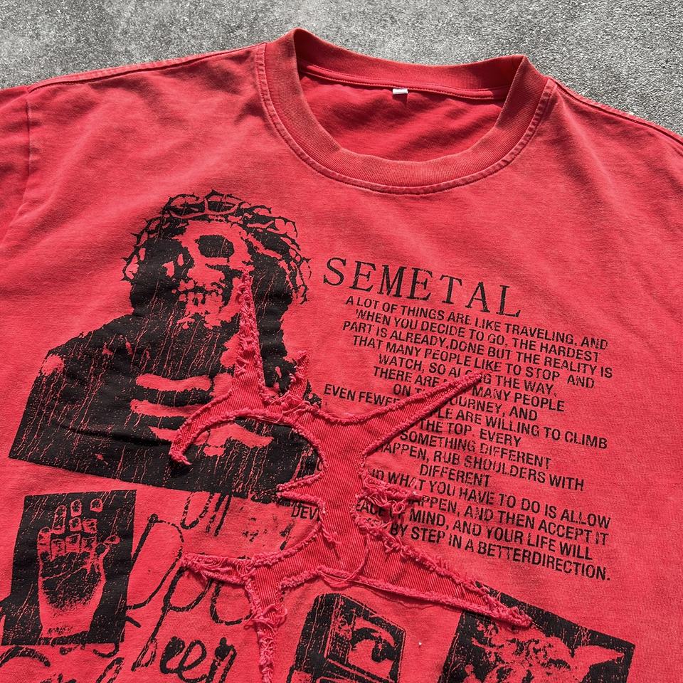 เสื้อยืดคอตตอนหนาน้ำหนักมาก ทรงโอเวอร์ไซส์ ตกแต่งลายปักแบบวินเทจ คอทรงกลม ลายกราฟิกแบบวินเทจ ไหล่ตก