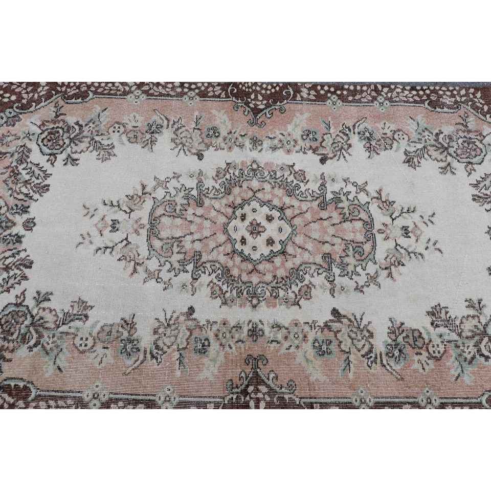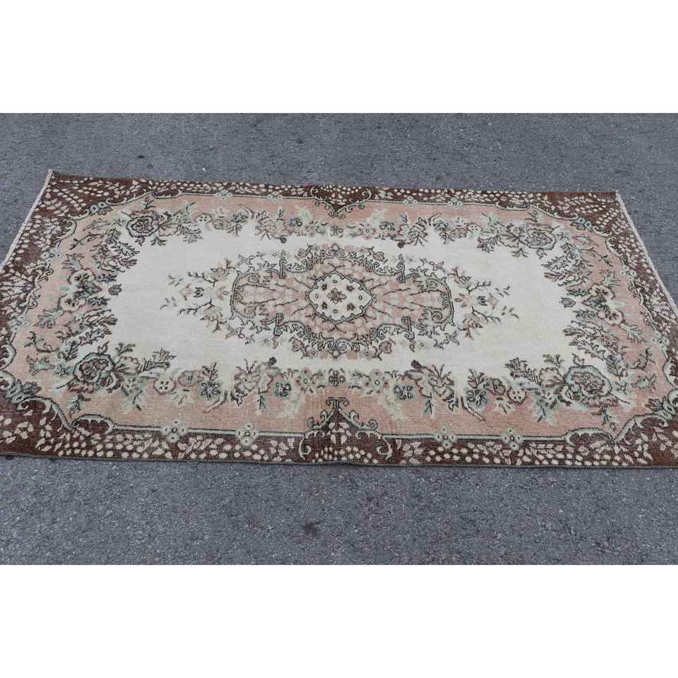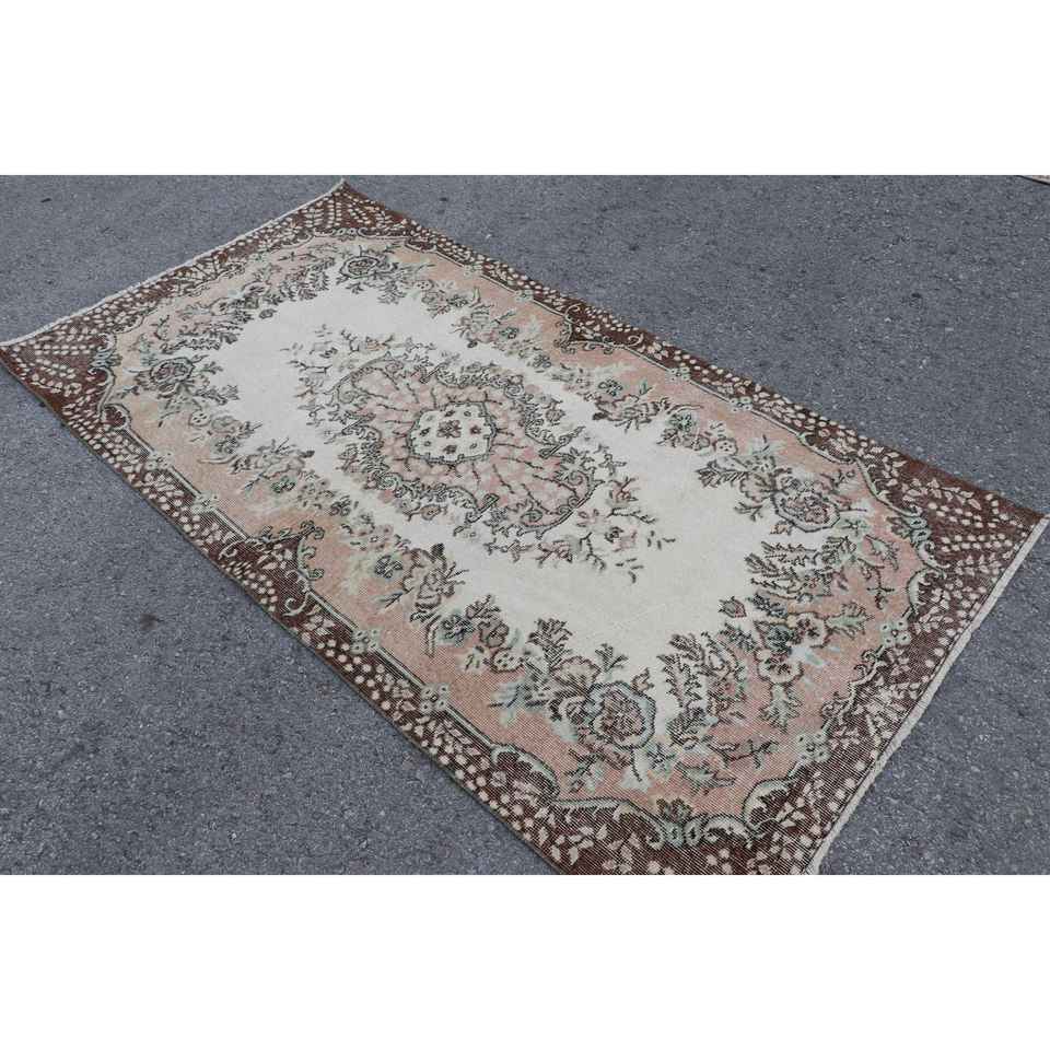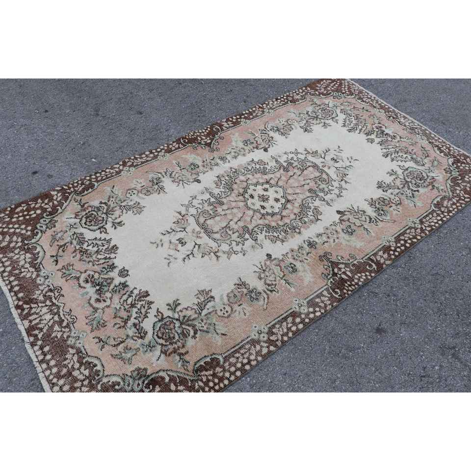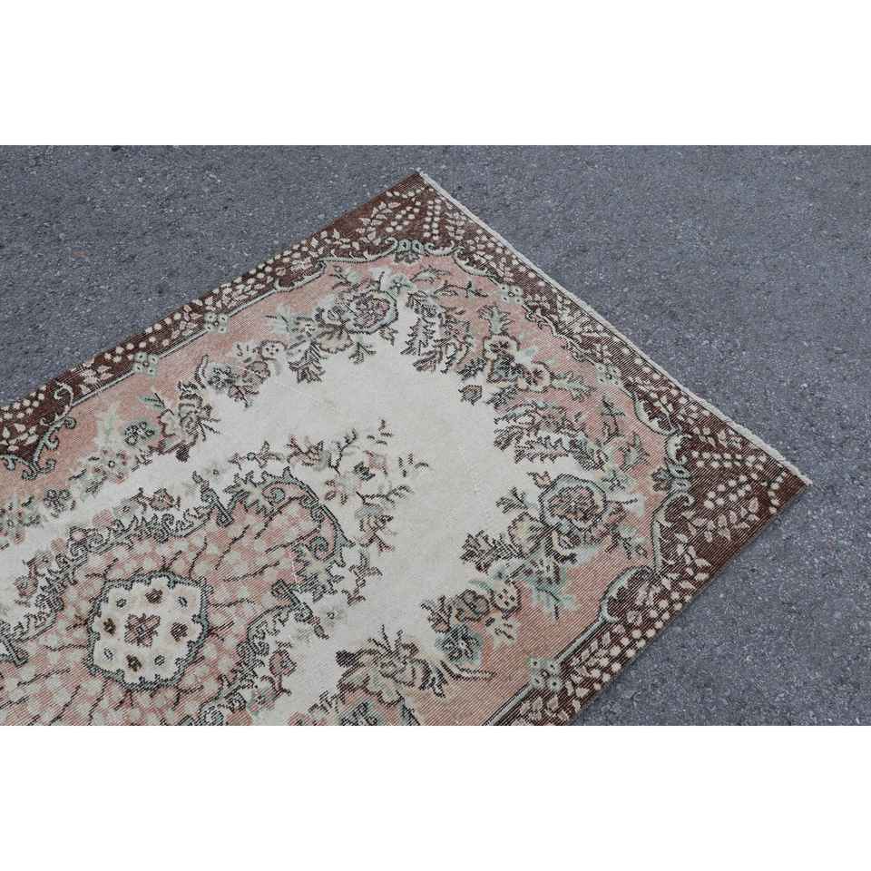 พรมวินเทจขนาด 3.8x7.1 ฟุต สีน้ำตาลลายดอกไม้ พรมขนสัตว์ตุรกี