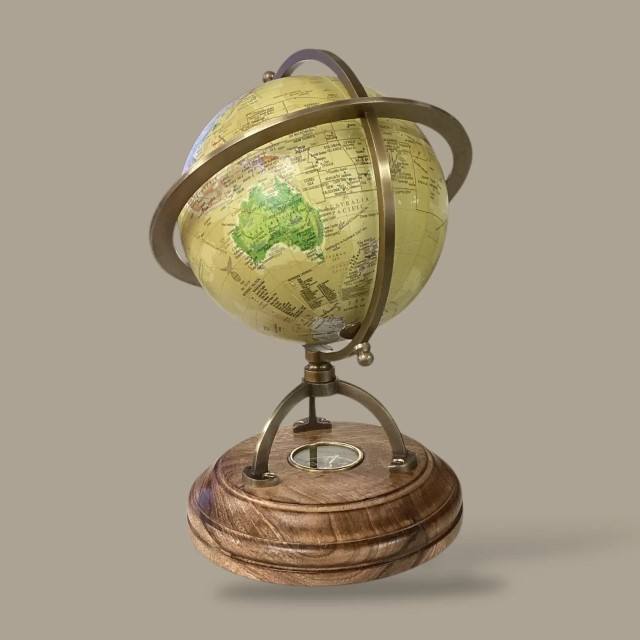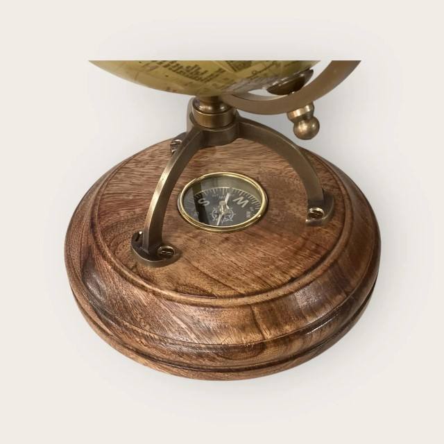 ลูกโลกโบราณสไตล์อาร์ตเดโค งานแฮนด์เมด ของตกแต่งโต๊ะทำงาน พร้อมเข็มทิศ เหมาะสำหรับบ้าน สำนักงาน ห้องอ่านหนังสือ ของขวัญ
