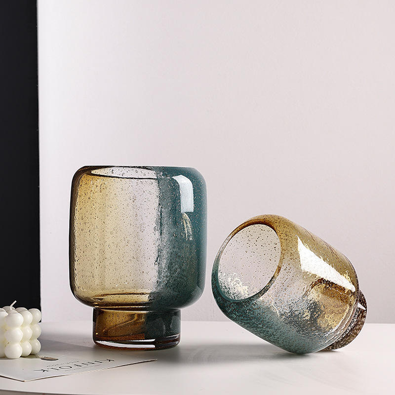 แจกันแก้วลายนกยูงปากใหญ่สไตล์วินเทจสีเขียวดอกไม้ตกแต่งบ้านแจกันโต๊ะไล่ระดับสีสำหรับ