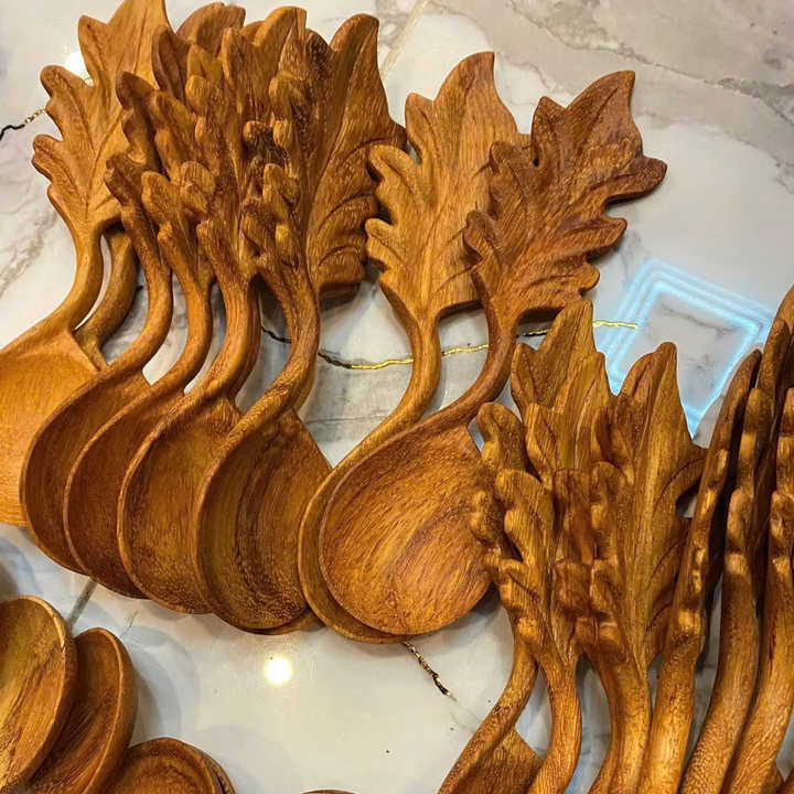 ช้อนใบเฟิร์นไม้แอชแบบวินเทจ12ซม. 30ซม. เป็นมิตรกับสิ่งแวดล้อมปาร์ตี้คริสต์มาสงานแต่งงานบ้านร้านอาหารเครื่องใช้บนโต๊ะอาหารของขวัญ
