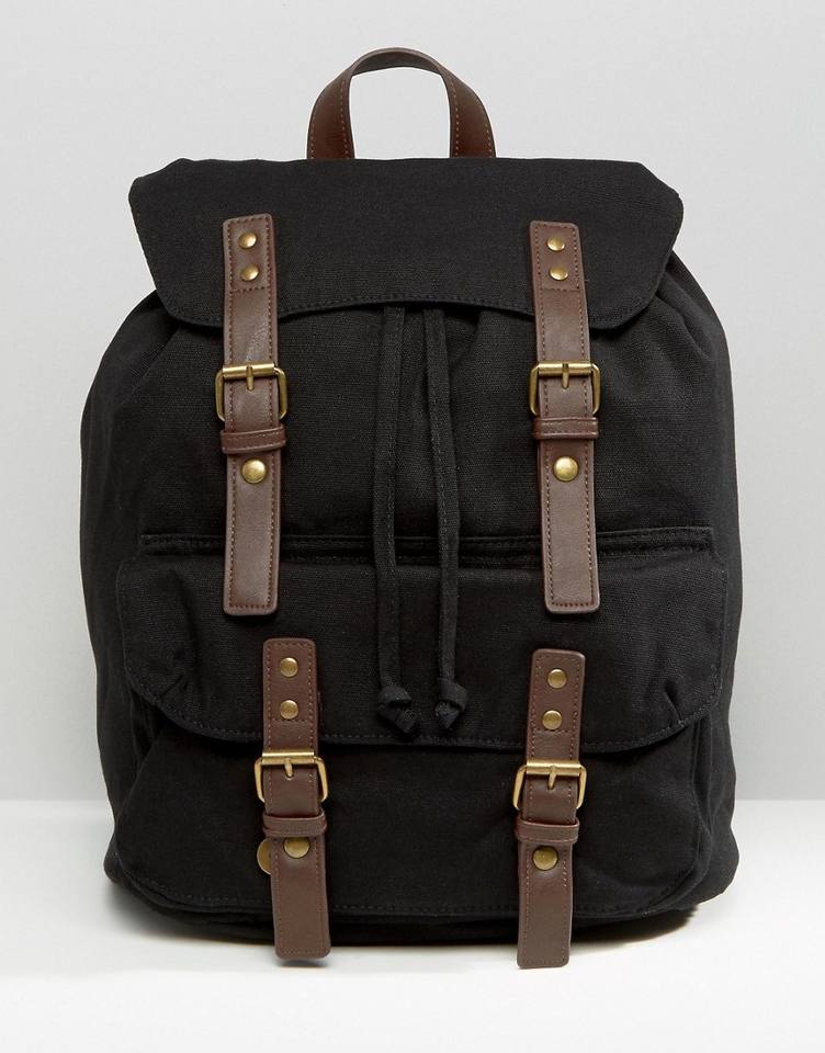 กระเป๋าเป้สะพายหลังผ้าใบแบบผูกเชือกสำหรับผู้ชายวินเทจกระเป๋าสะพายหลังสไตล์ฮิปสเตอร์มีกระเป๋าสองช่องสำหรับผู้ชายเครื่องประดับแฟชั่น