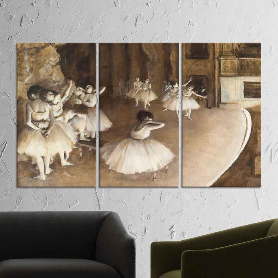 ภาพพิมพ์บนผ้าใบนักบัลเลต์วินเทจบนเวที ศิลปะติดผนังบัลเลต์สุดหรู ชุดผ้าใบ 3 ชิ้น