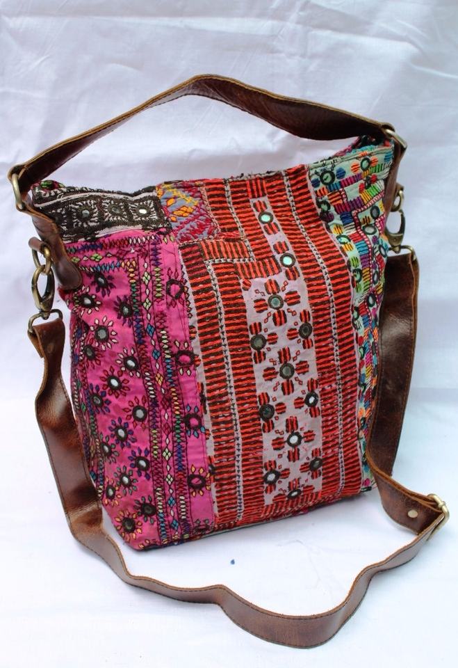 กระเป๋าโท้ทหนังแท้สไตล์โบฮีเมียนวินเทจ งานแฮนด์เมด ตกแต่งด้วยงานปักมือ ดีไซน์เนอร์แบรนด์
