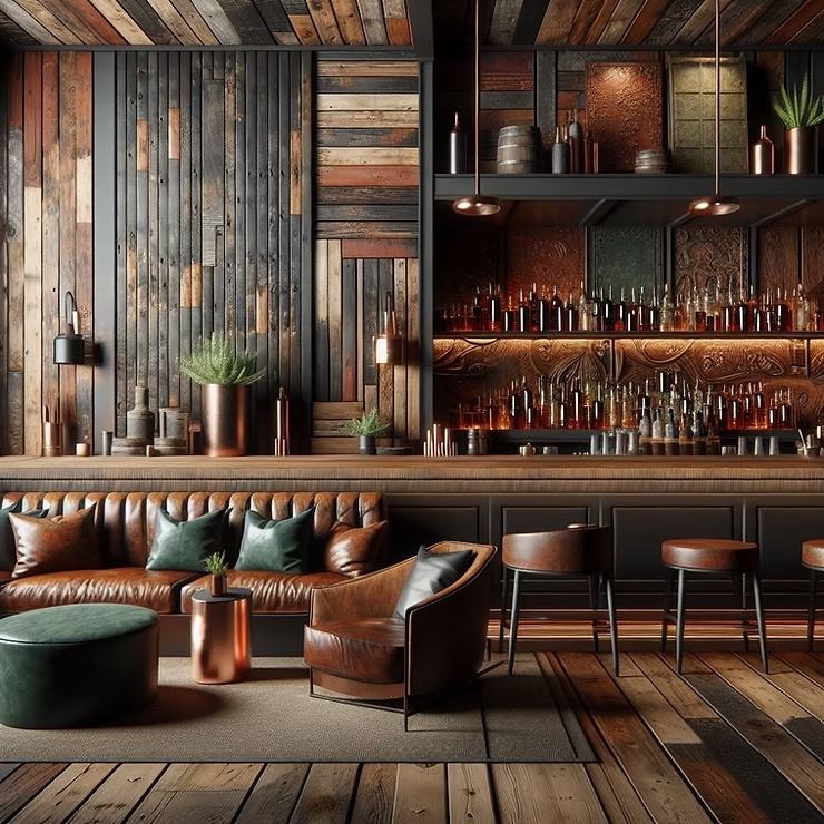 การตกแต่งภายในบาร์สไตล์วินเทจ ไฟ LED เฟอร์นิเจอร์โชว์สินค้า ของตกแต่งแบบกำหนดเอง เคาน์เตอร์ผับ คลับ ร้านอาหาร ออกแบบพื้นที่รับประทานอาหาร