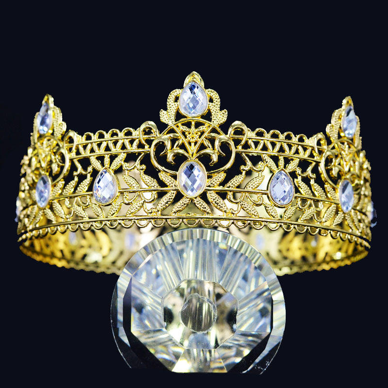 มงกุฎบาร็อควินเทจสุดหรูสำหรับเจ้าสาวและเจ้าบ่าว งานแต่งงาน วันเกิด และวันครบรอบ ประดับเพชรและโลหะผสม