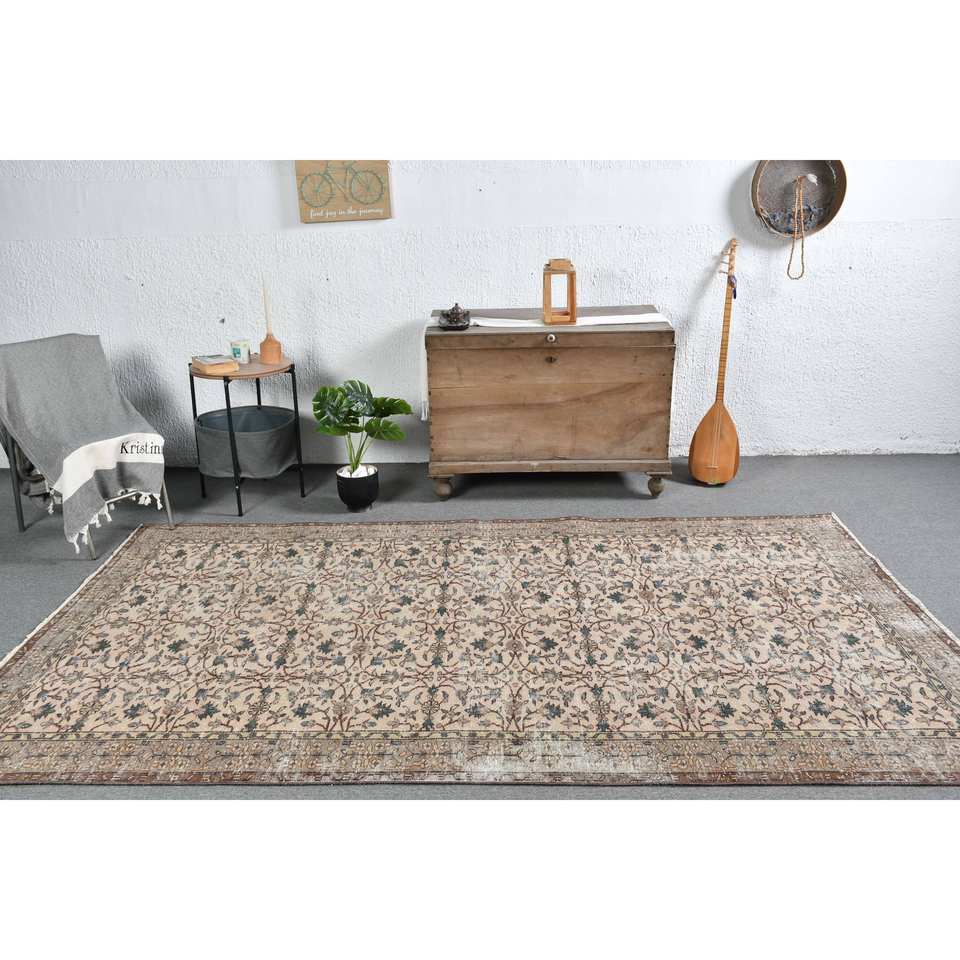 พรมขนแกะสี่เหลี่ยมสไตล์วินเทจสีน้ำตาลเบจ5.3X9.4ฟุตงานเย็บปะติดสำหรับวัยรุ่นห้องนั่งเล่นชุดพรมข้างเตียง