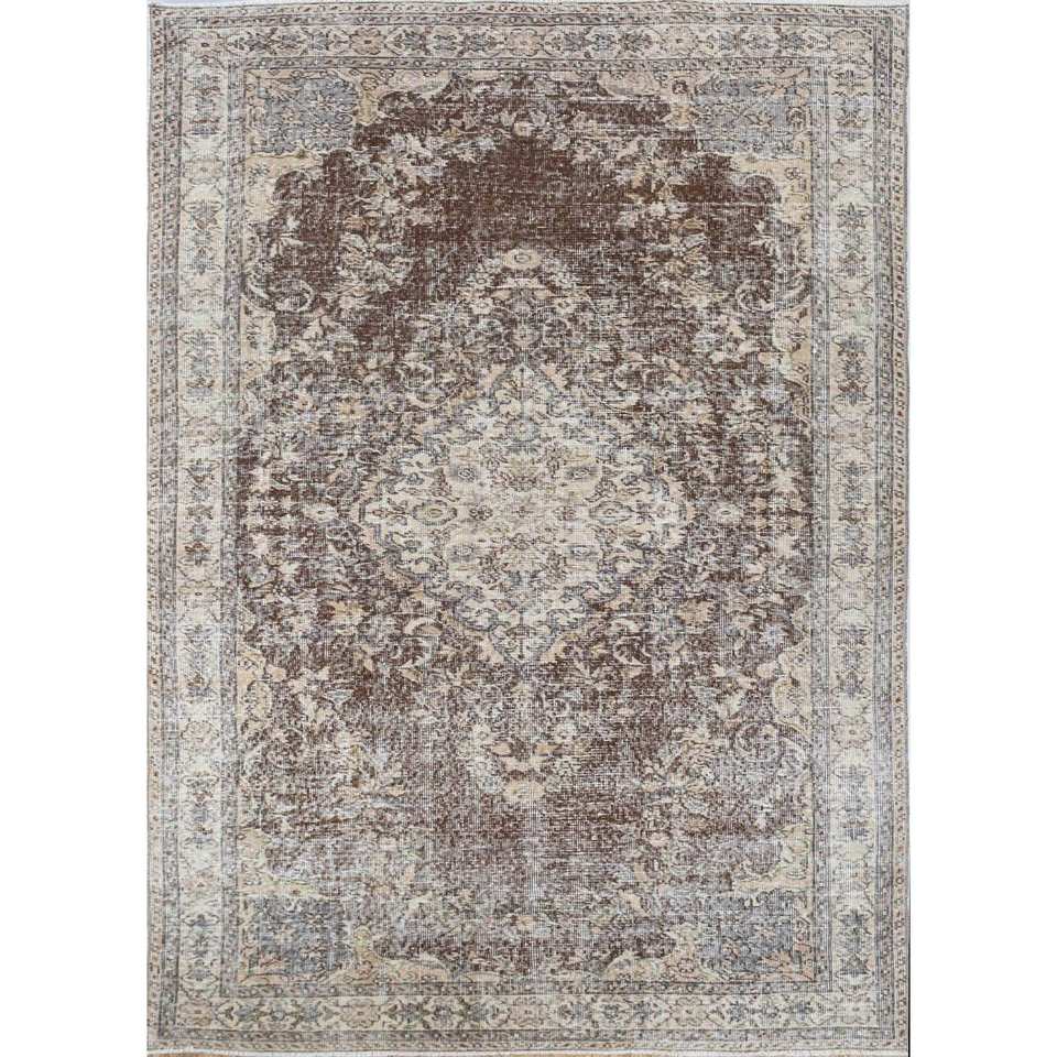 พรมขนสัตว์สีเบจและสีน้ำตาลสไตล์วินเทจ ทอมือลายคลาสสิกแบบเหรียญและสี่เหลี่ยมผืนผ้า รีไซเคิลสำหรับห้องนั่งเล่นวัยรุ่น-Pae-2864