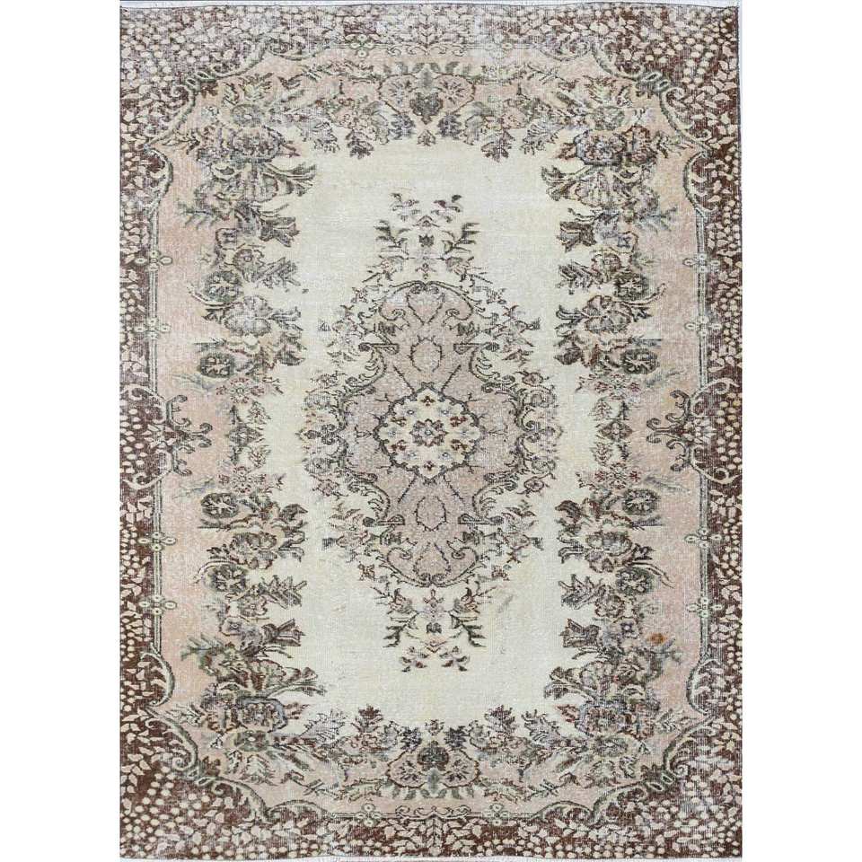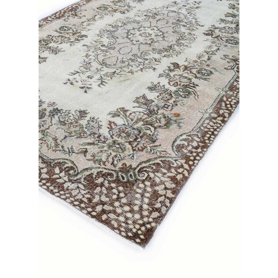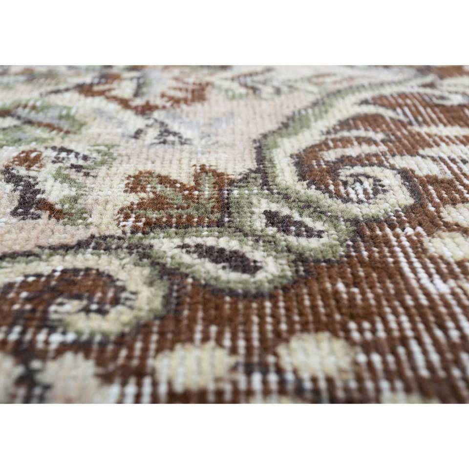 พรมขนสัตว์สีเบจและสีน้ำตาลสไตล์วินเทจ ทอมือลายเมดัลเลียนคลาสสิกทรงสี่เหลี่ยมผืนผ้า สำหรับห้องนั่งเล่นวัยรุ่น รุ่น Pae-3318 ผลิตจากวัสดุรีไซเคิล