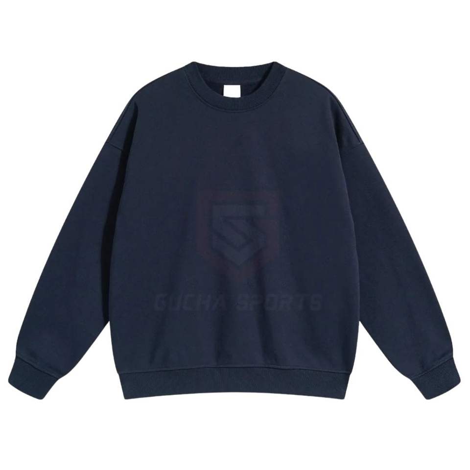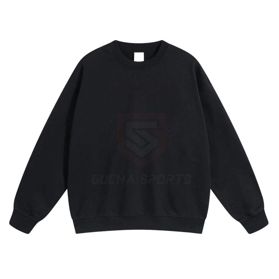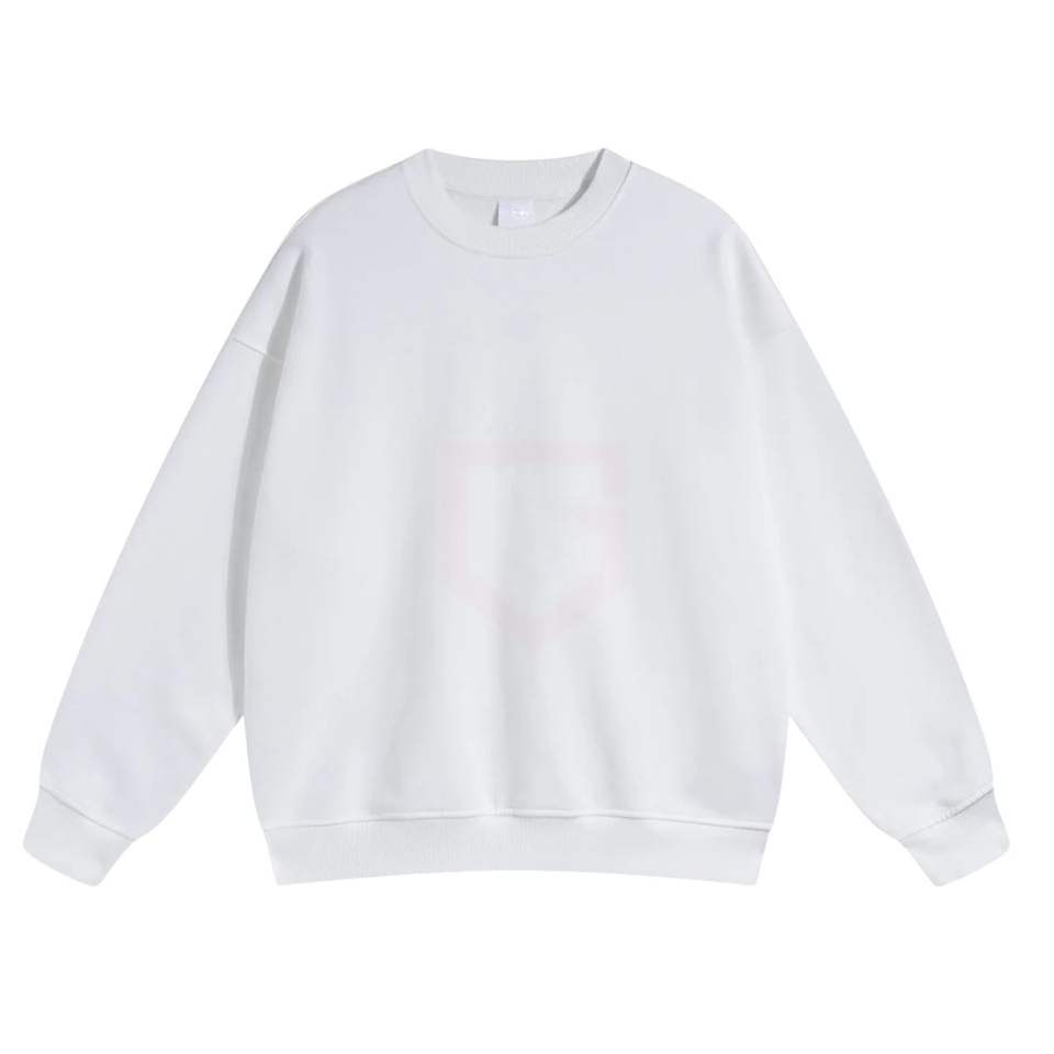 เสื้อสเวตเชิ้ตคอกลมสีเบจสไตล์วินเทจ ผ้าฝรั่งเศสเทอร์รี่เนื้อหนา พิมพ์ลายนูนโลโก้ตามสั่ง