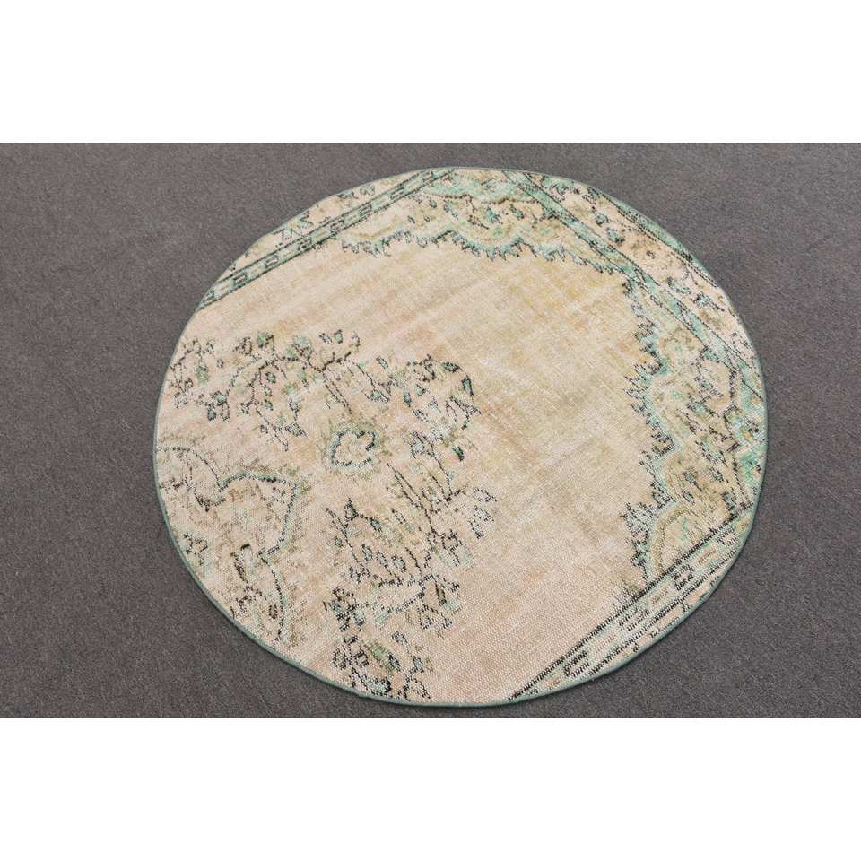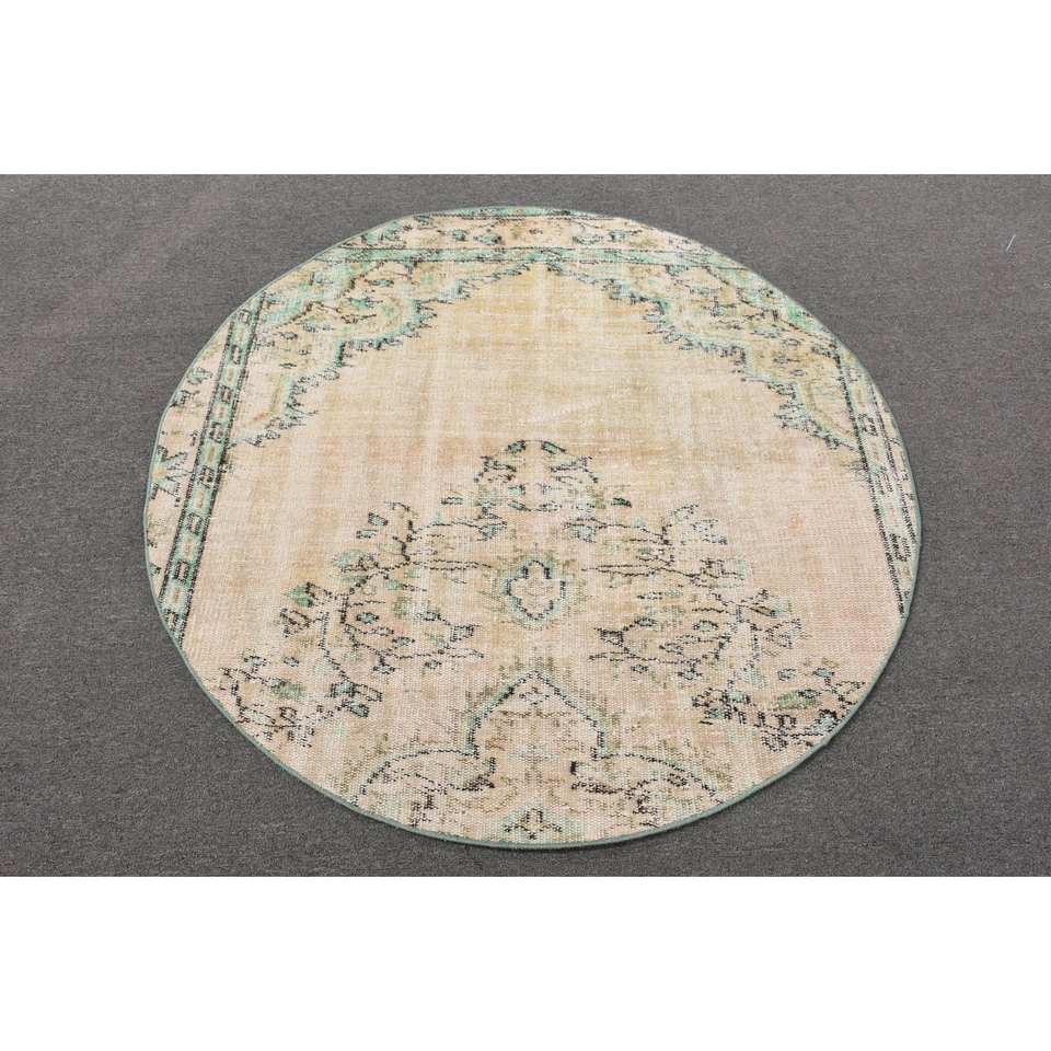 Vintage Beige Green Wool Rug 4.2 X 4.2ft Handmade Turkish Rectangle Rugs Latex Backing for Living Room Teenagers Patchwork
