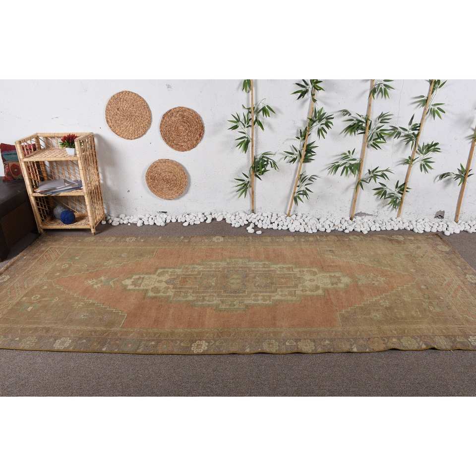 พรมขนเบจสไตล์ตุรกีวินเทจแบบคลาสสิกพื้นที่ขนาดใหญ่4.4 'x 10.9' (135x333ซม.) ขนสัตว์น้ำยางเย็บปะติดปะต่อกันสำหรับห้องโถงสี่เหลี่ยมผืนผ้าห้อง