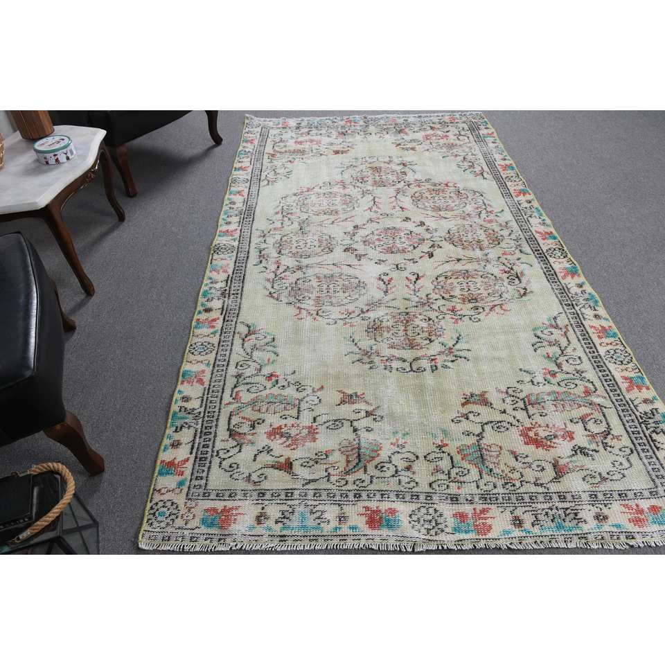 พรมขนสัตว์สีเบจแนววินเทจ9.1ft 5.1 x พรมทอแบบตุรกีมีลวดลายปะติดแผ่นยางรองสำหรับตกแต่งห้องนั่งเล่น
