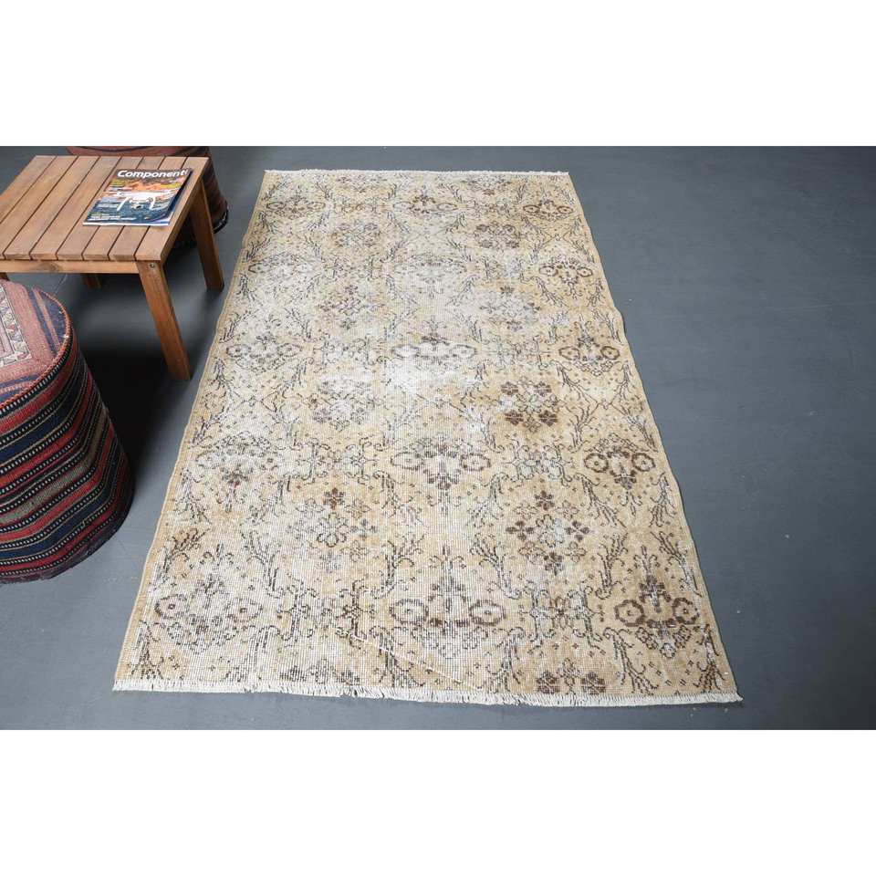 พรมขนสัตว์สีเบจแนววินเทจพรมขนแกะทรงสี่เหลี่ยมผืนผ้าผืนใหญ่ดีไซน์งานปะทำด้วยมือมียางรองสำหรับโถงทางเดิน3.8x6.6ฟุต