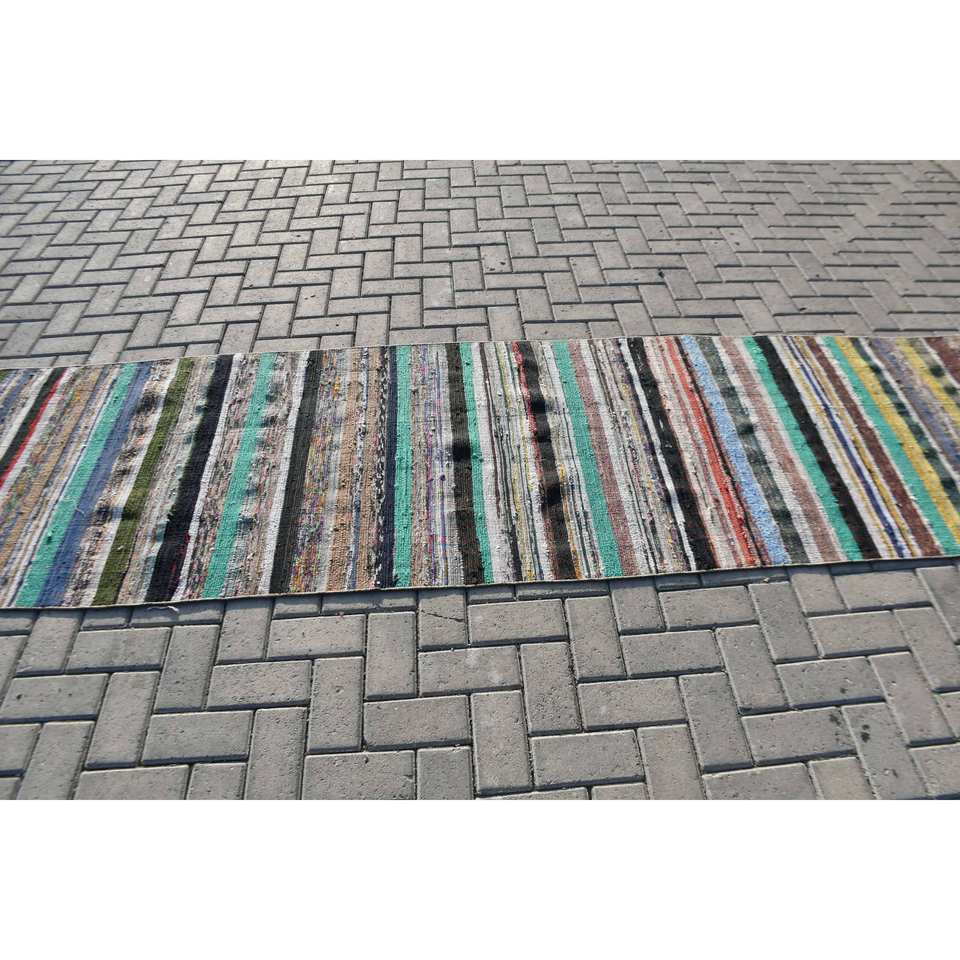 พรมขนแกะสีเบจสไตล์วินเทจทำด้วยมือขนาด2,9X16ฟุตผืนใหญ่งานเย็บปะแบบชนบทดีไซน์แบบแอบสแตรกสี่เหลี่ยมผืนผ้าสำหรับห้องวัยรุ่น