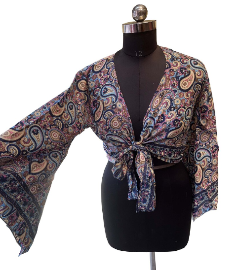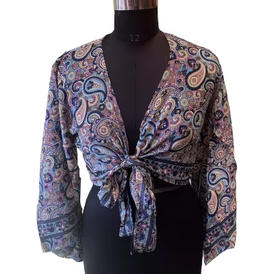 เสื้อครอปผ้าไหมเนื้อนุ่มสำหรับผู้หญิงสไตล์พันสั้นพร้อมเชือกผูกด้านหน้าแบบปรับได้เหมาะสำหรับการเป็นชั้นหรือสวมใส่ในสภาพอากาศที่อบอุ่น