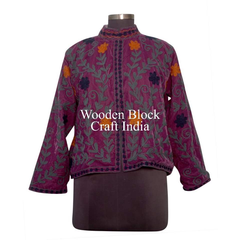 เสื้อแจ็คเก็ตกำมะหยี่ปักลายซูซานี งานแฮนด์เมด คุณภาพดี วินเทจ สำหรับผู้หญิง แจ็คเก็ตซูซานีสั้น ฟรีไซส์ แจ็คเก็ตผ้าควิลท์สั้น