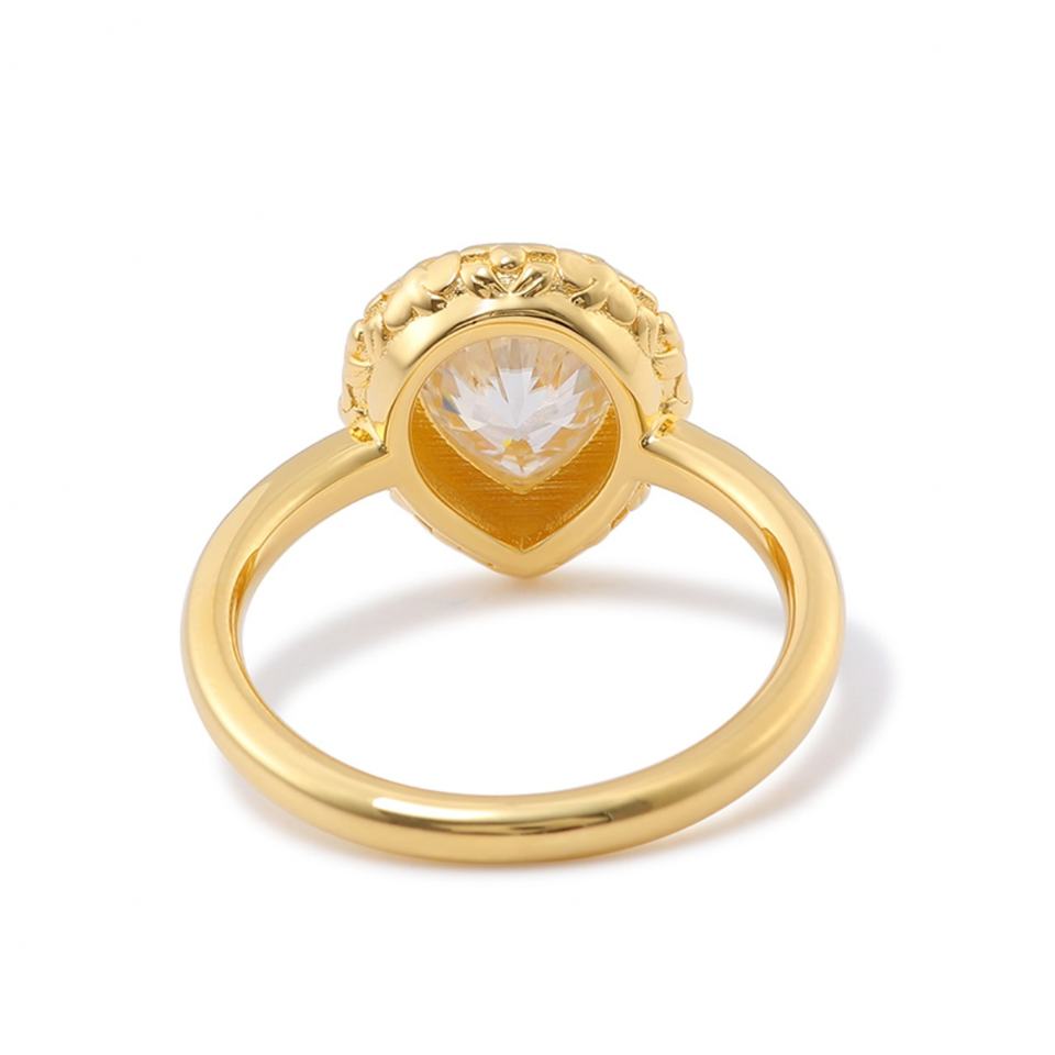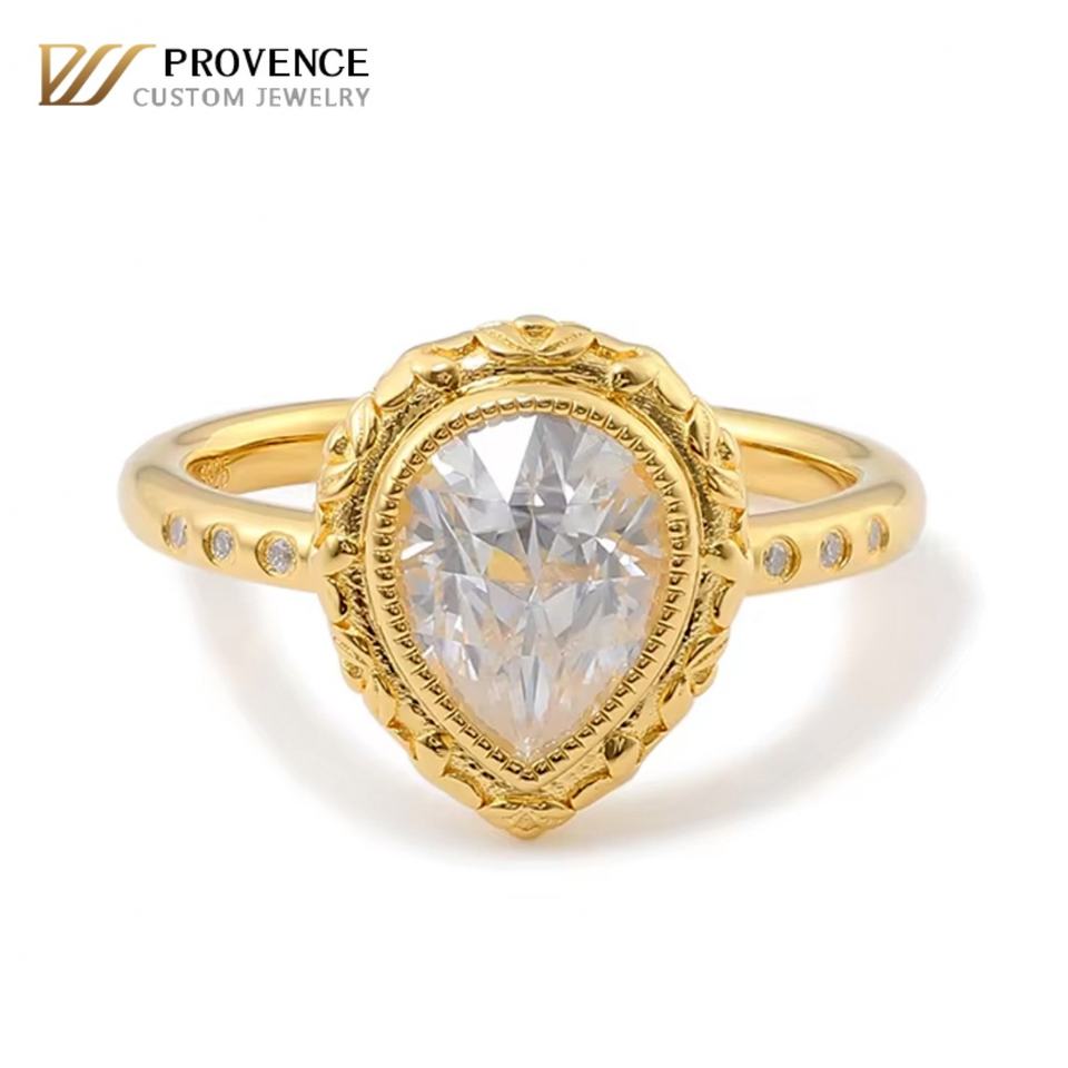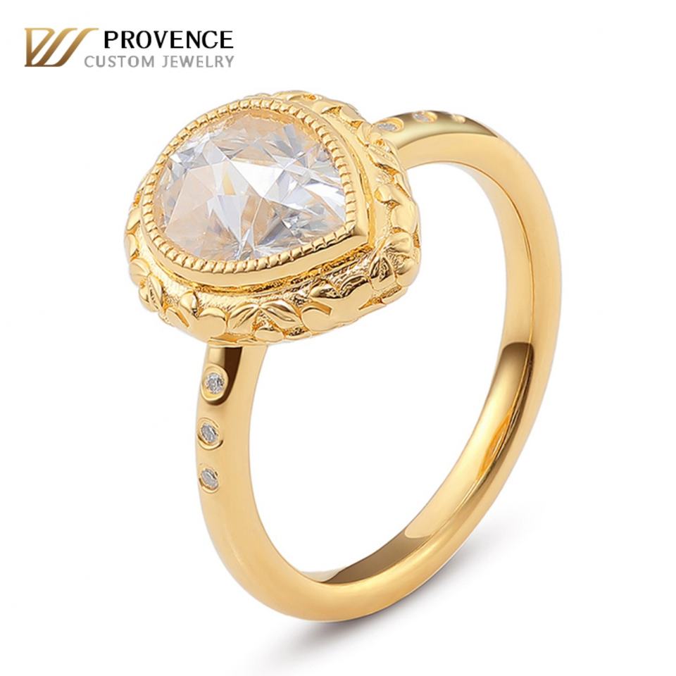 แหวนแต่งงานทองคำแท้ 18k สีเหลืองทอง ประดับเพชรโมอิสซาไนต์ทรงวินเทจ ดีไซน์หรูหรา