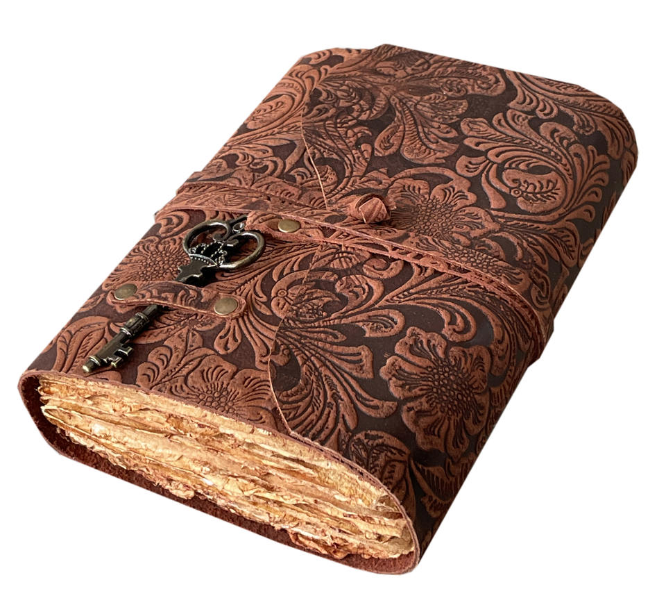 ดอกไม้ในสวนทำด้วยมือหนังแท้ปกแข็งสีน้ำตาลนูนสมุดโน้ตขนาดใหญ่ทำมือปกกระดาษขอบ