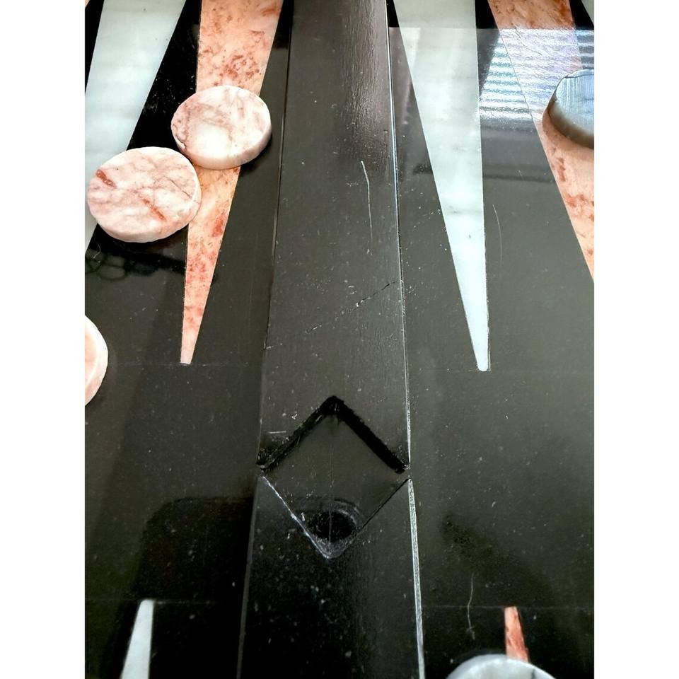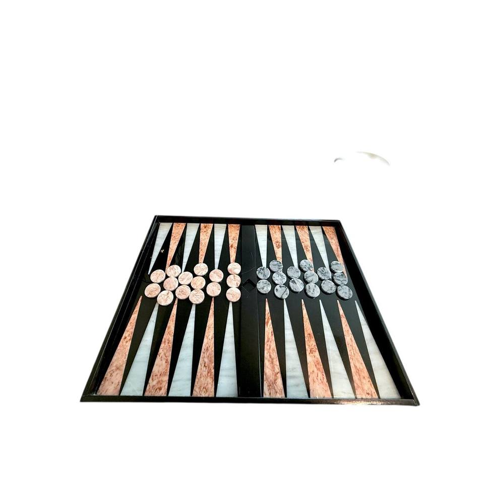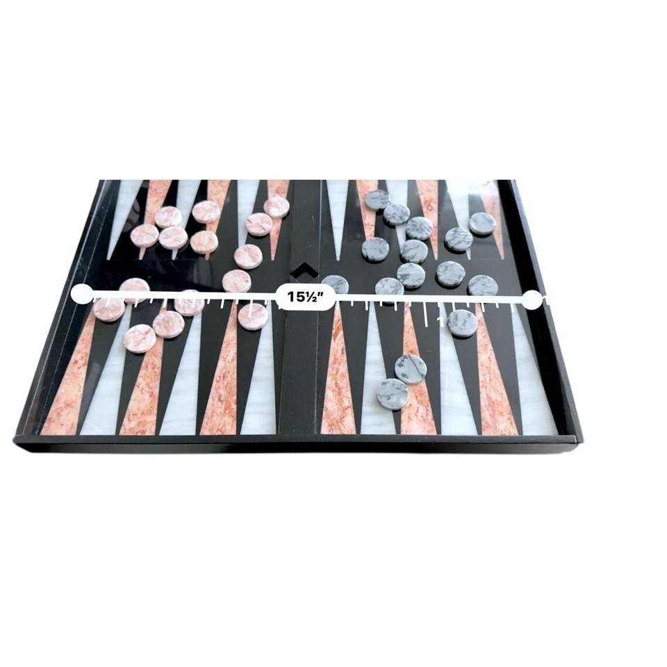 ชุดแบ็คแกมมอนหินอ่อนสีดำวินเทจ พร้อมลวดลายสีชมพูขาว หมากกระดานลายหินอ่อนสีชมพูเทา ของขวัญเกมกระดานสุดหรู