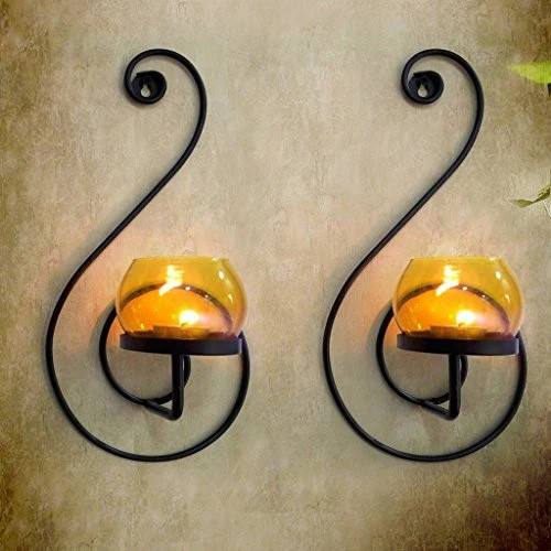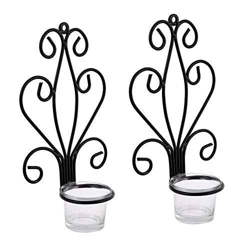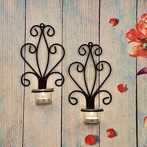 ชุดเชิงเทียนติดผนังโลหะสีดำสไตล์วินเทจ ดีไซน์ลายเส้นหรูหรา พร้อมที่ใส่เทียนแก้ว ให้บรรยากาศอบอุ่น ตกแต่งบ้านอย่างมีสไตล์