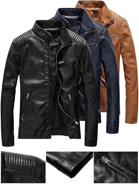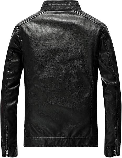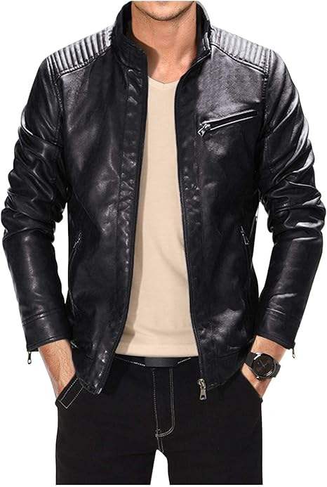 Vintage Black Slim Fit Men's Faux Leather Jacket Knitted & Breathable with Front Logo Button Lightweight Plus Size